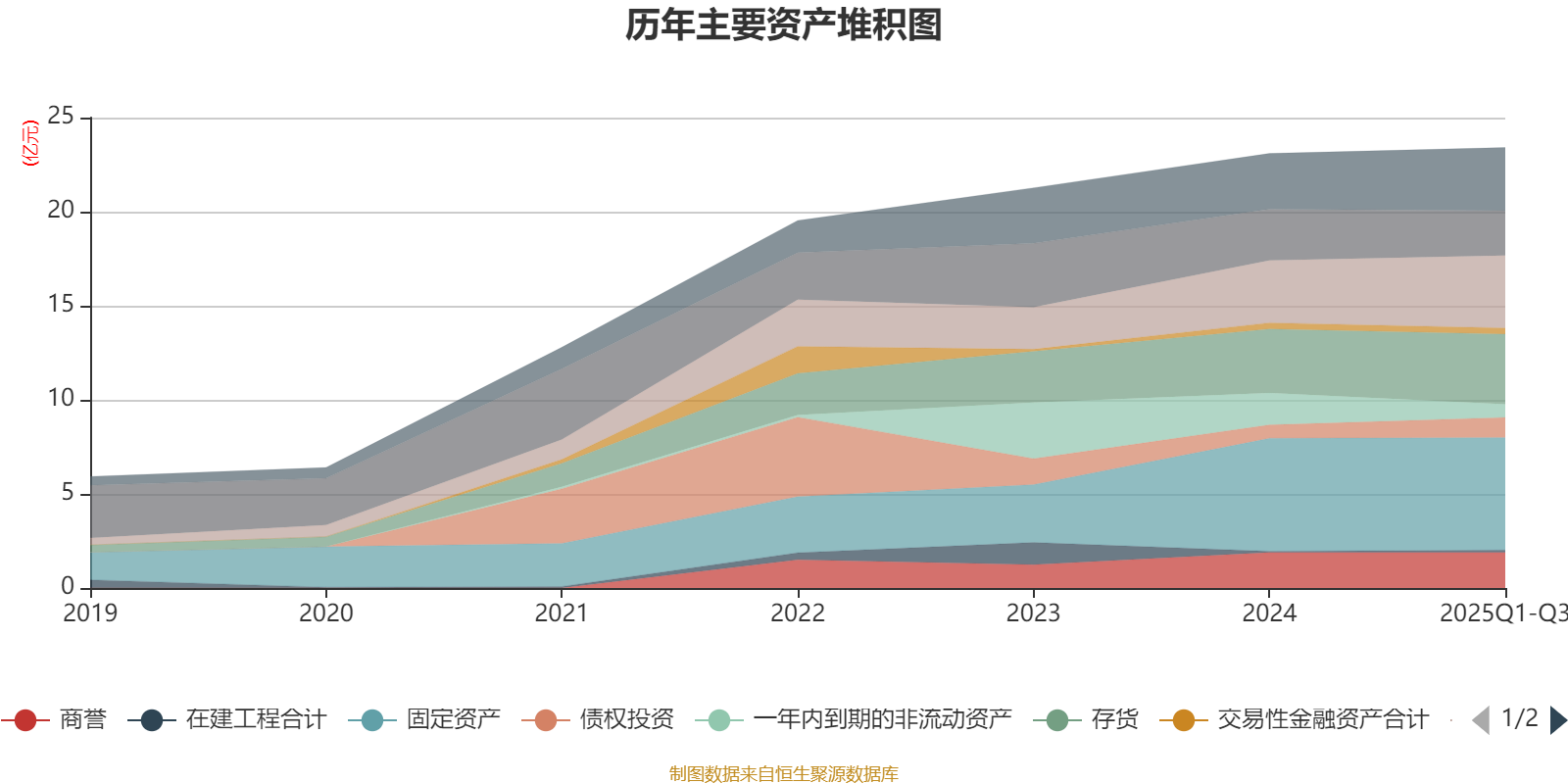 资产重大变化方面,截至2025年三季度末,公司一年内到期的非流动资产较上年末减少58.59%,占公司总资产比重下降4.33个百分点;应收票据及应收账款较上年末增加16.23%,占公司总资产比重上升2.11个百分点;货币资金较上年末减少12.64%,占公司总资产比重下降1.63个百分点;债权投资较上年末增加50.45%,占公司总资产比重上升1.49个百分点。