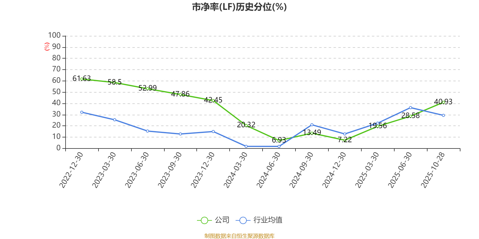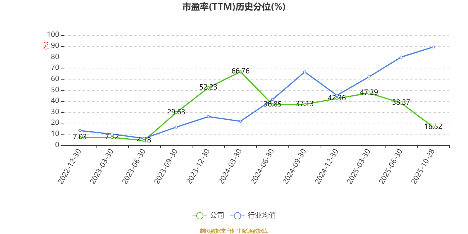 市盈率、市净率为负时,不显示当期分位数,会导致折线图中断。