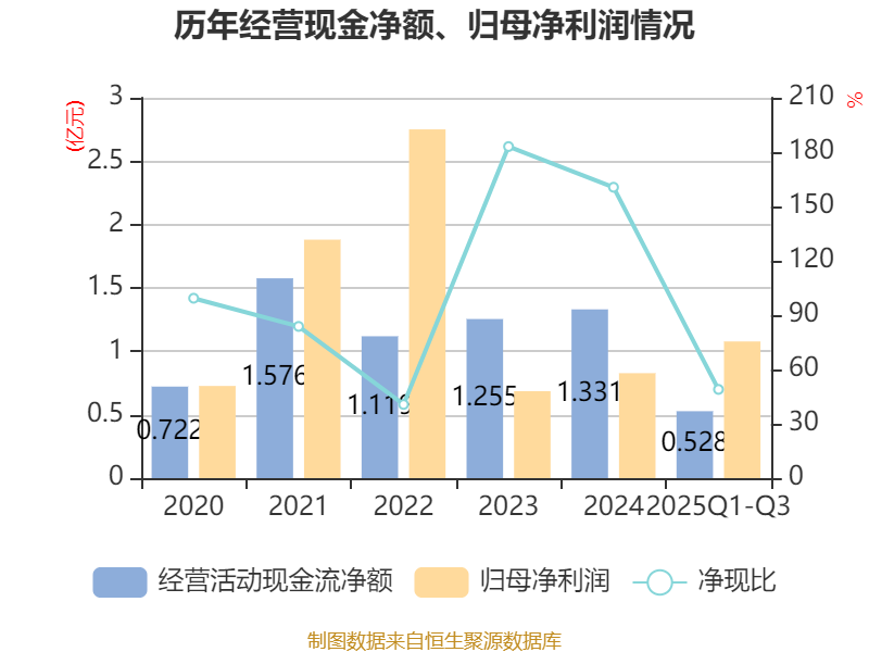 2025年前三季度,公司流动比率为5.14,速动比率为3.5。