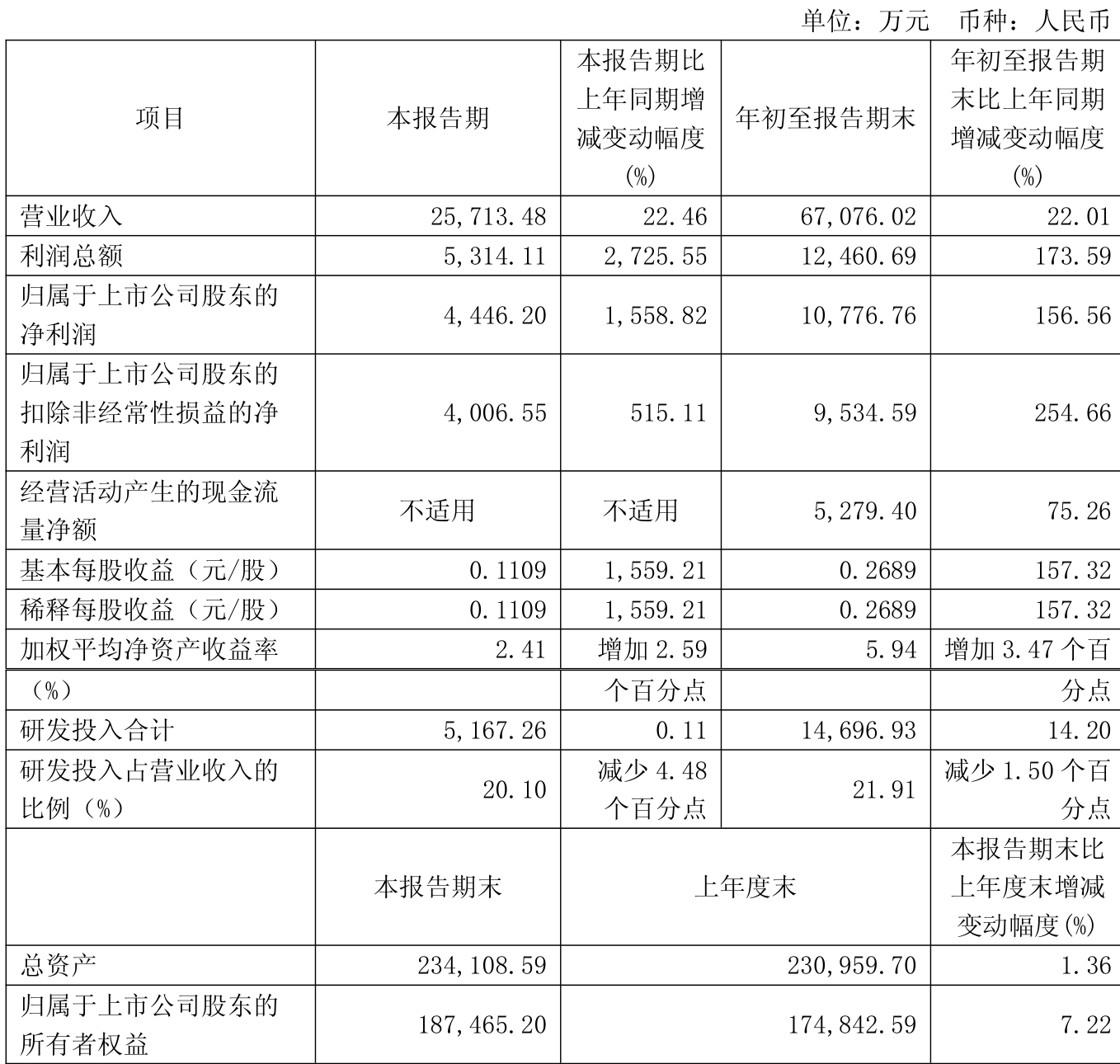 中证智能财讯纳微科技(688690)10月29日披露2025年第三季度报告。前三季度公司实现营业总收入6.71亿元,同比增长22.01%;归母净利润1.08亿元,同比增长156.56%;扣非净利润9534.59万元,同比增长254.66%;经营活动产生的现金流量净额为5279.4万元,同比增长75.26%;报告期内,纳微科技基本每股收益为0.2689元,加权平均净资产收益率为5.94%。