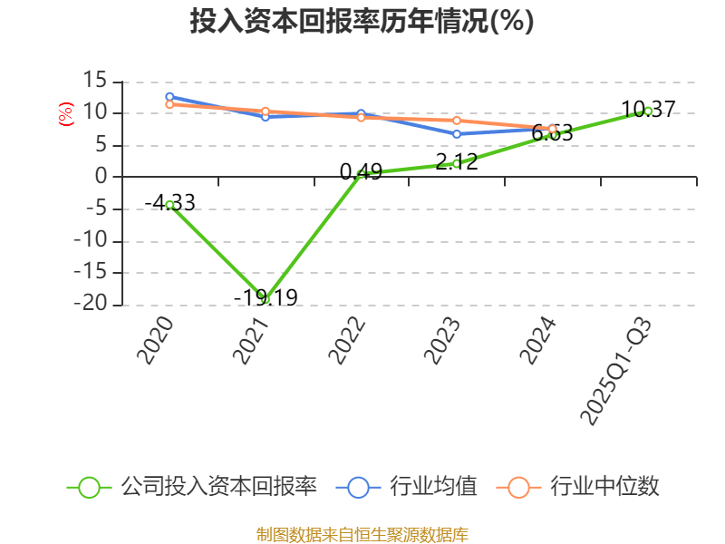 盈利能力方面, 2025年前三季度公司加权平均净资产收益率为11.47%,同比上升9.38个百分点。公司2025年前三季度投入资本回报率为10.37%,较上年同期上升9.02个百分点。