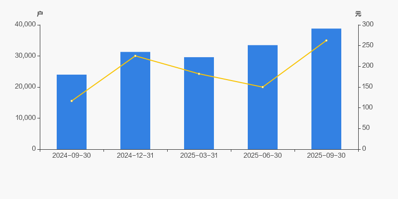 2024年9月30日至今,公司股东户数显著大幅增长,区间涨幅达61.74%。2024年9月30日至2025年9月30日区间股价上涨125.27%。