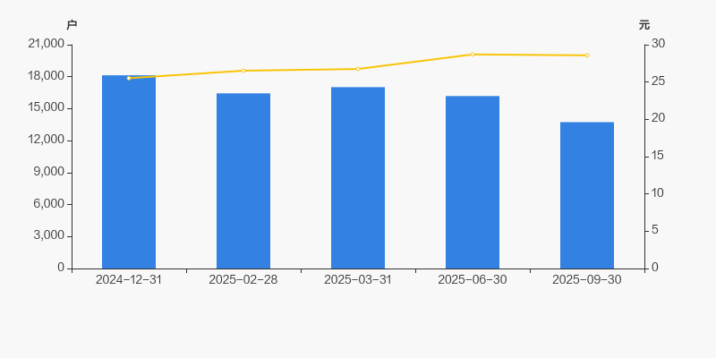 2024年12月31日至今,公司股东户数显著下降,区间跌幅为24.25%。2024年12月31日至2025年9月30日区间股价上涨11.99%。