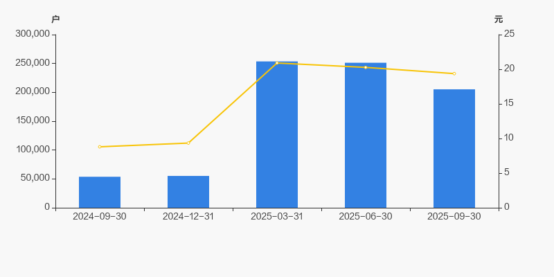 2024年9月30日至今,公司股东户数成倍增长,区间涨幅达282.15%。2024年9月30日至2025年9月30日区间股价上涨120.07%。