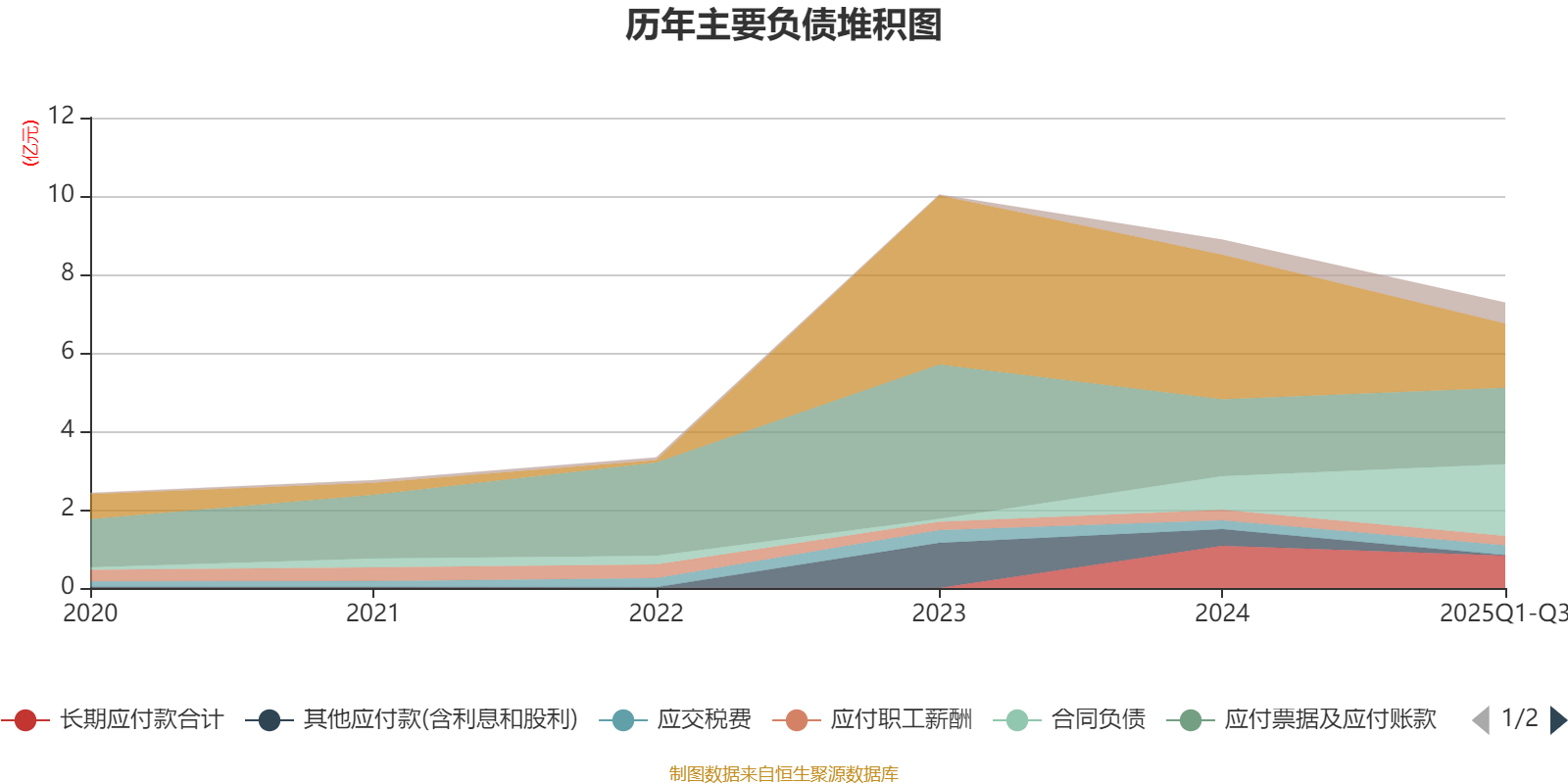 负债重大变化方面,截至2025年三季度末,公司短期借款较上年末减少55.6%,占公司总资产比重下降9.64个百分点;合同负债较上年末增加112.95%,占公司总资产比重上升5.8个百分点;其他应付款(含利息和股利)较上年末减少96.58%,占公司总资产比重下降2.07个百分点;长期应付款合计较上年末减少23.32%,占公司总资产比重下降0.88个百分点。