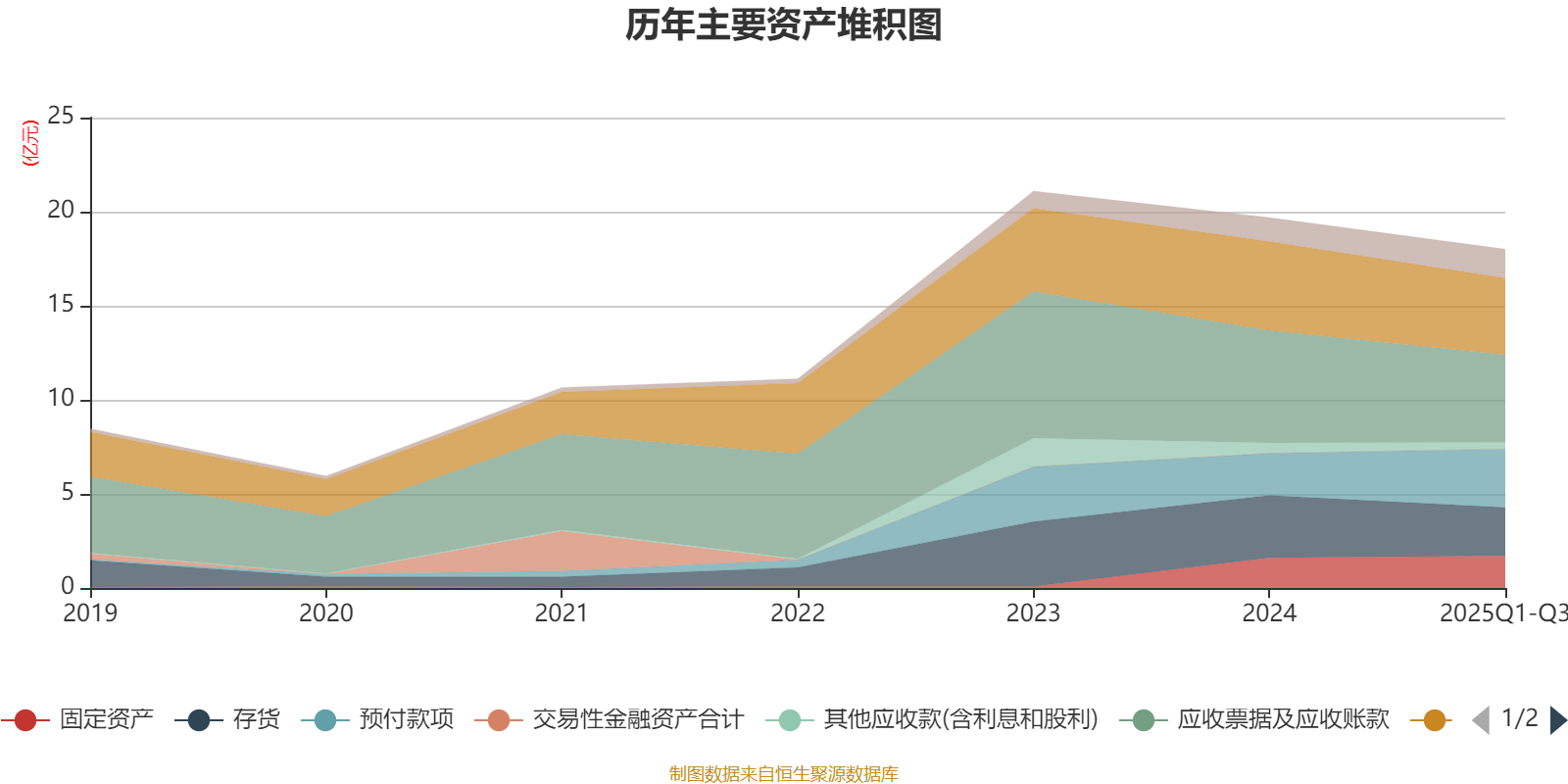 资产重大变化方面,截至2025年三季度末,公司预付款项较上年末增加38.89%,占公司总资产比重上升5.89个百分点;应收票据及应收账款较上年末减少22.07%,占公司总资产比重下降4.49个百分点;存货较上年末减少22.28%,占公司总资产比重下降2.54个百分点;货币资金较上年末减少13.79%,占公司总资产比重下降1.39个百分点。