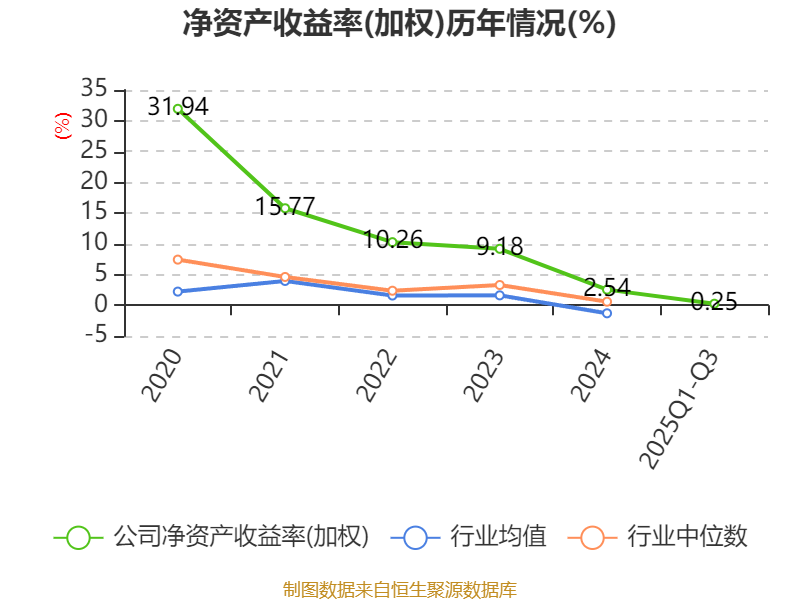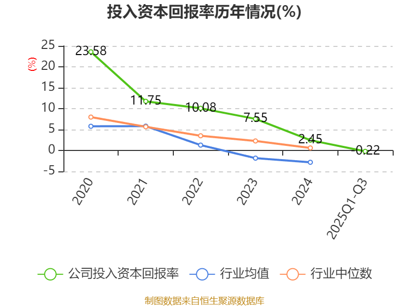 盈利能力方面, 2025年前三季度公司加权平均净资产收益率为0.25%,同比下降4.91个百分点。公司2025年前三季度投入资本回报率为-0.22%,较上年同期下降4.72个百分点。
