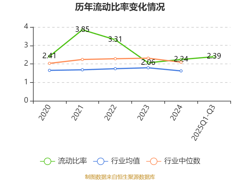 2025年前三季度,公司流动比率为2.39,速动比率为1.99。