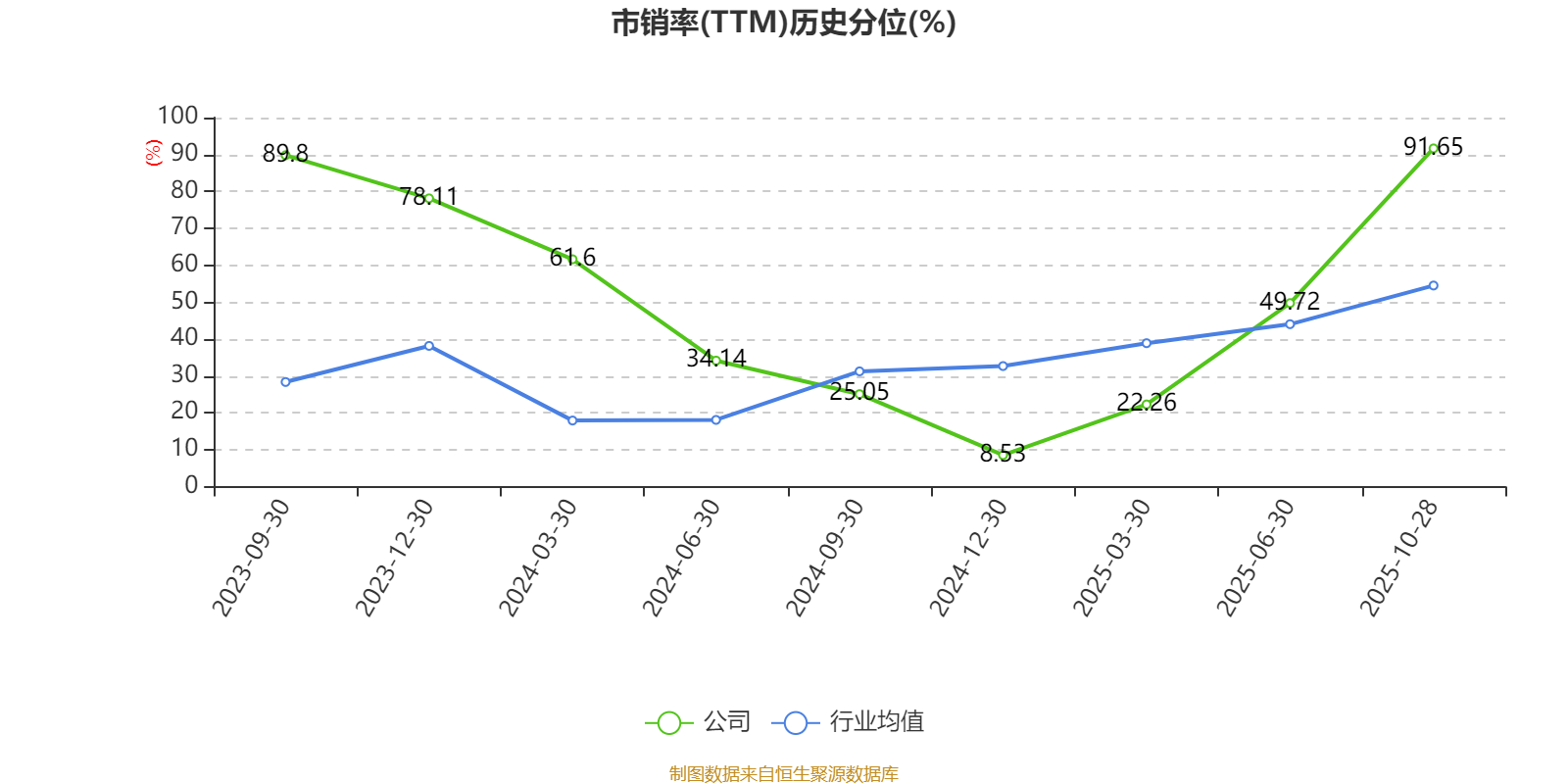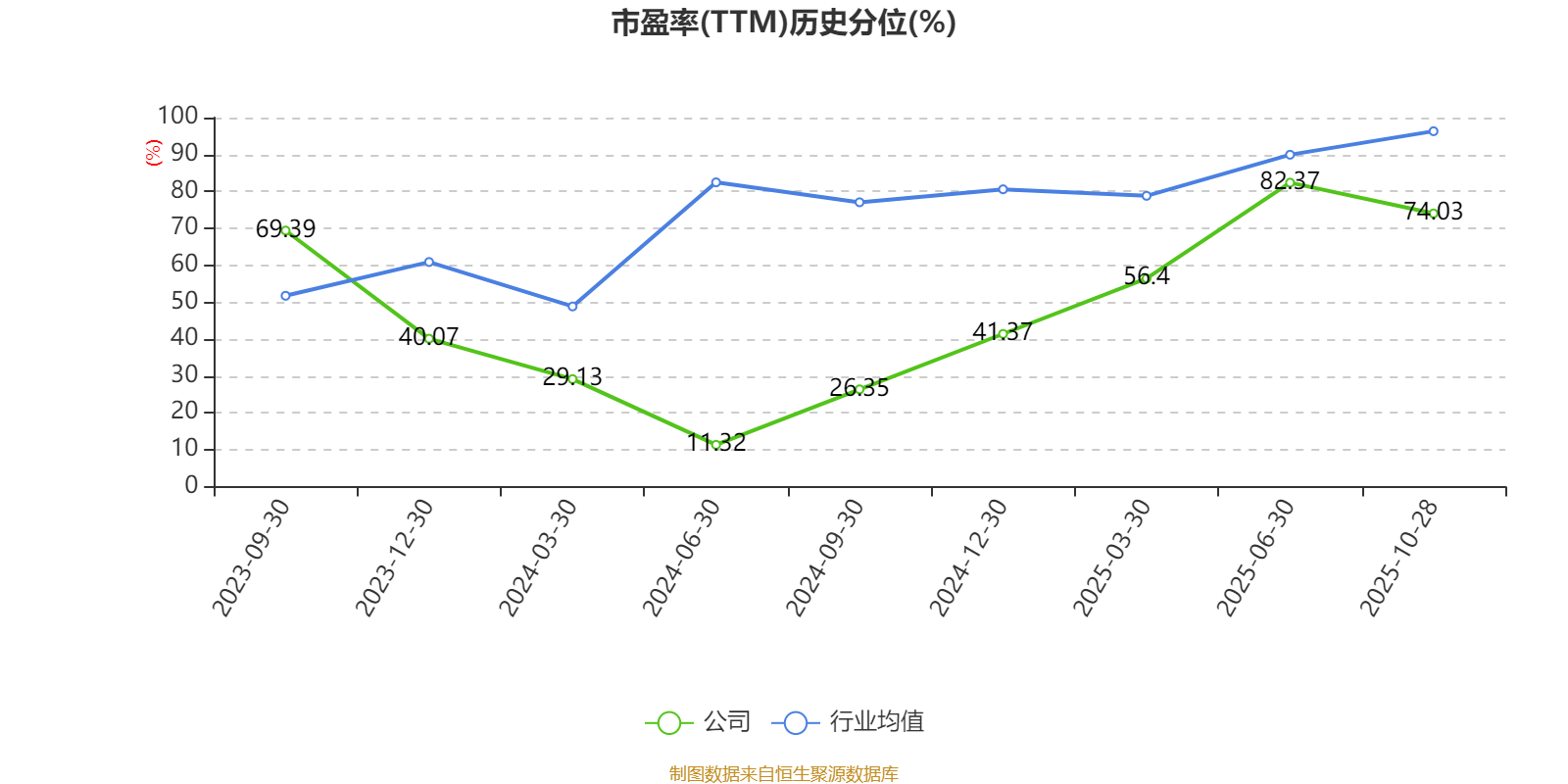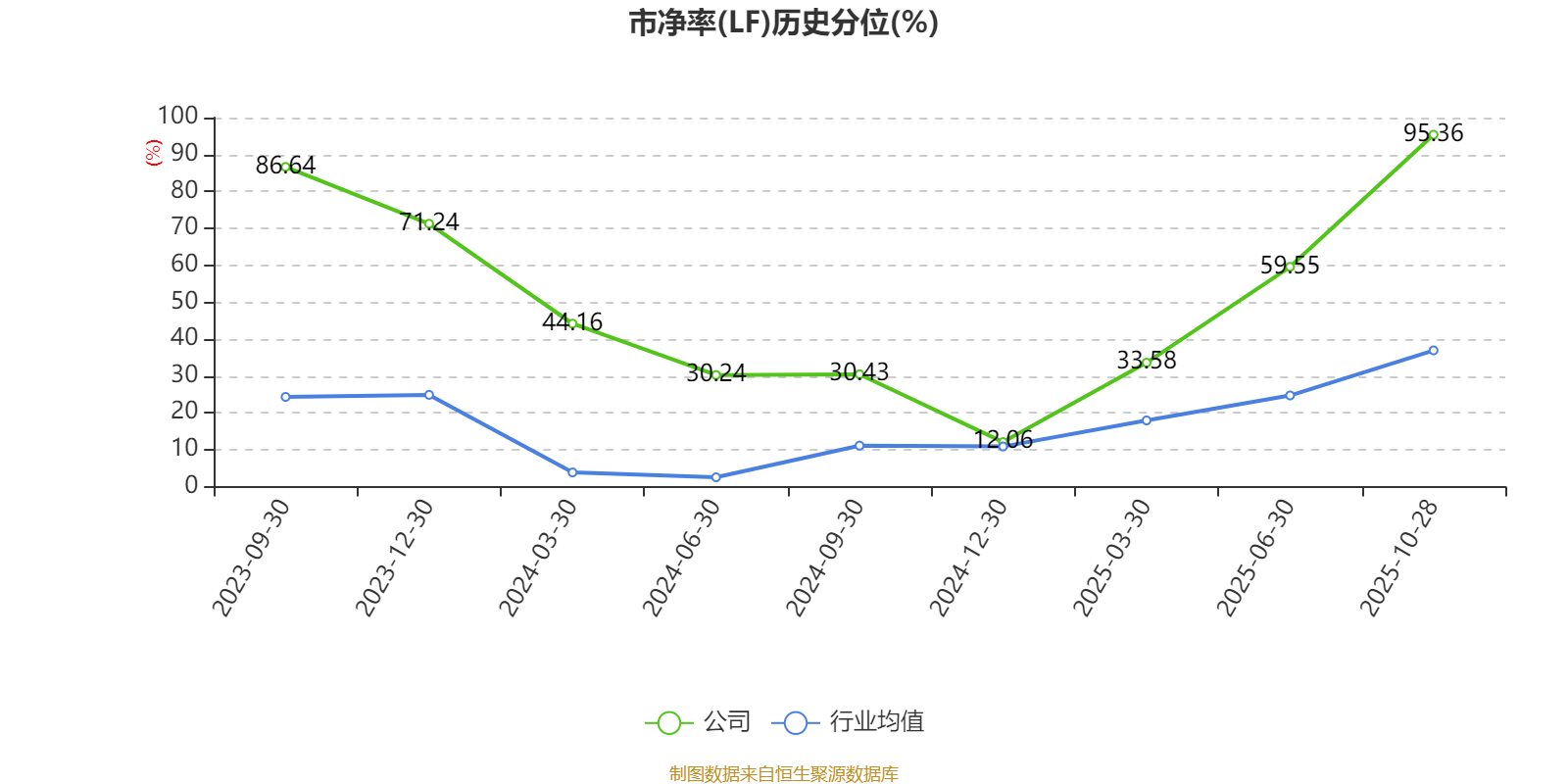 市盈率、市净率为负时,不显示当期分位数,会导致折线图中断。