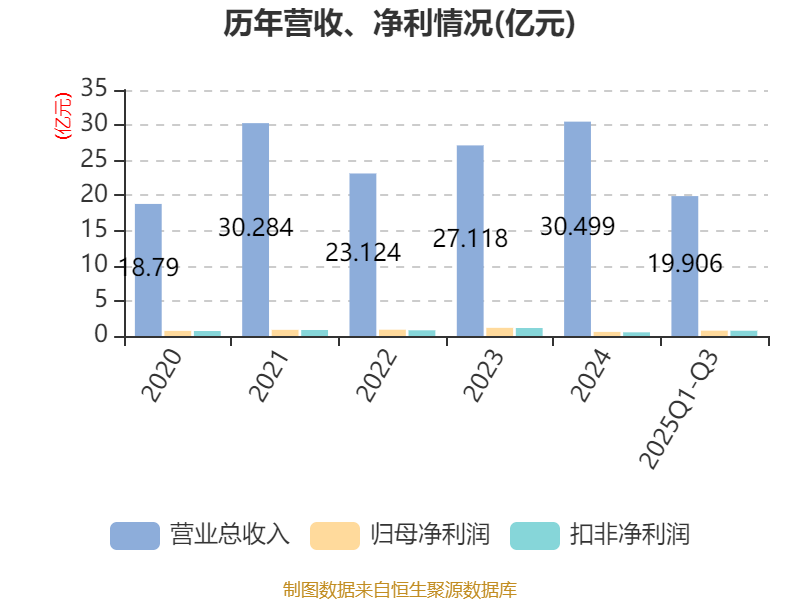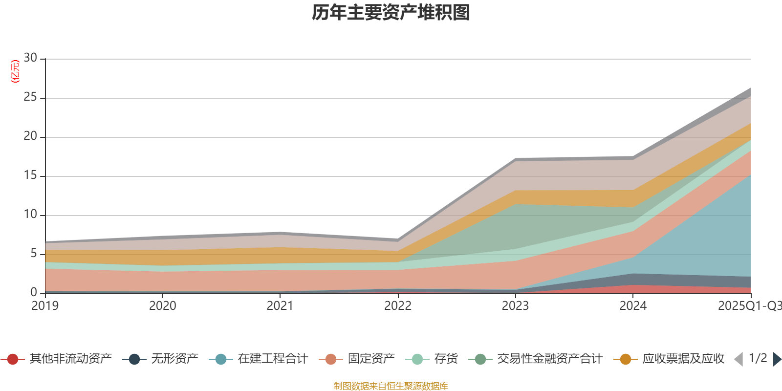 资产重大变化方面,截至2025年三季度末,公司在建工程合计较上年末增加535.64%,占公司总资产比重上升37.92个百分点;交易性金融资产合计较上年末减少100%,占公司总资产比重下降10.57个百分点;货币资金较上年末减少10.44%,占公司总资产比重下降8.85个百分点;固定资产较上年末减少8.5%,占公司总资产比重下降7.44个百分点。