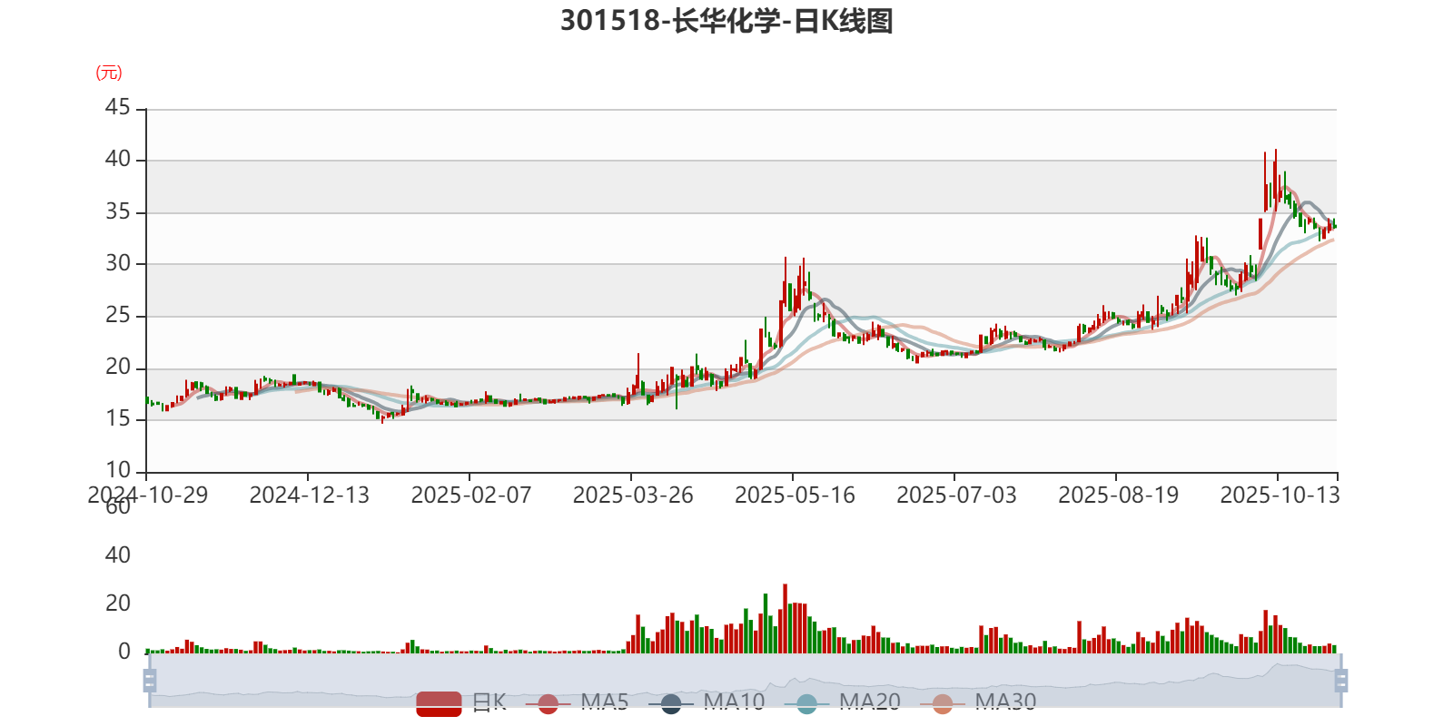 以10月28日收盘价计算,长华化学目前市盈率(TTM)约为46.7倍,市净率(LF)约3.2倍,市销率(TTM)约1.65倍。