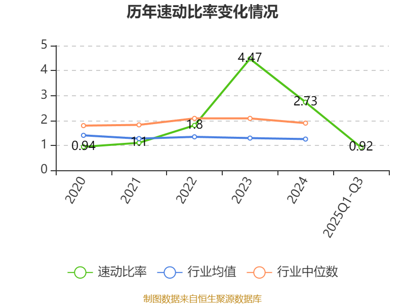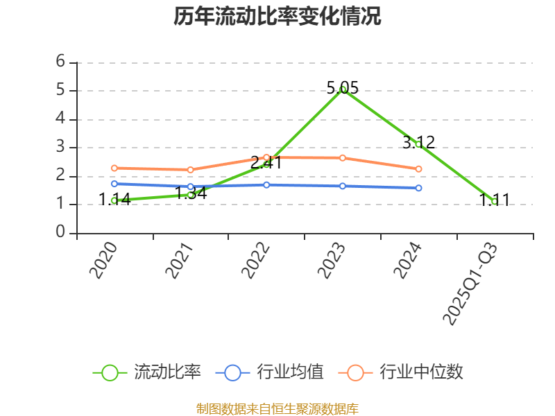 2025年前三季度,公司流动比率为1.11,速动比率为0.92。