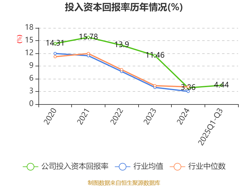 盈利能力方面, 2025年前三季度公司加权平均净资产收益率为5.24%,同比上升2.92个百分点。公司2025年前三季度投入资本回报率为4.44%,较上年同期上升2.22个百分点。