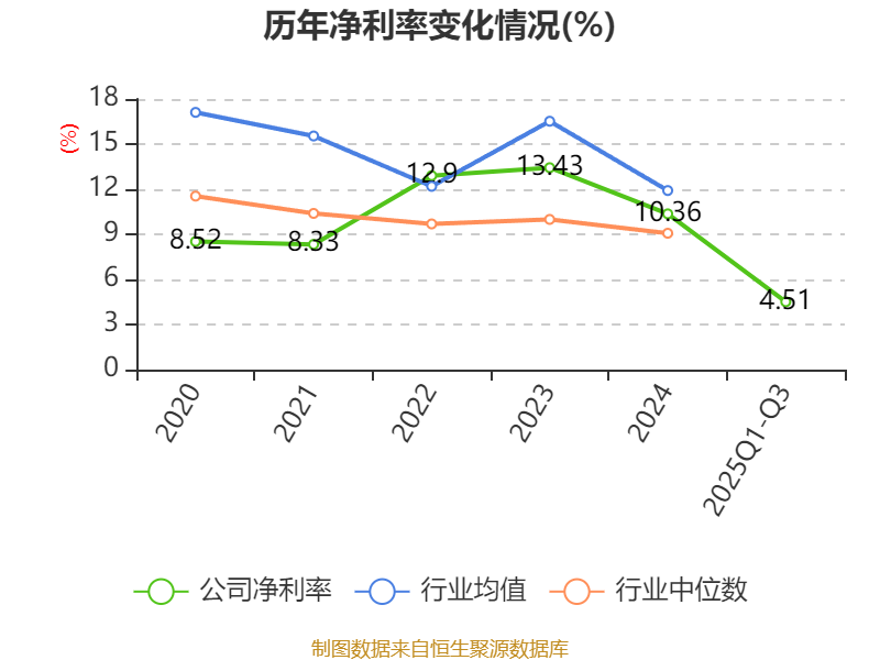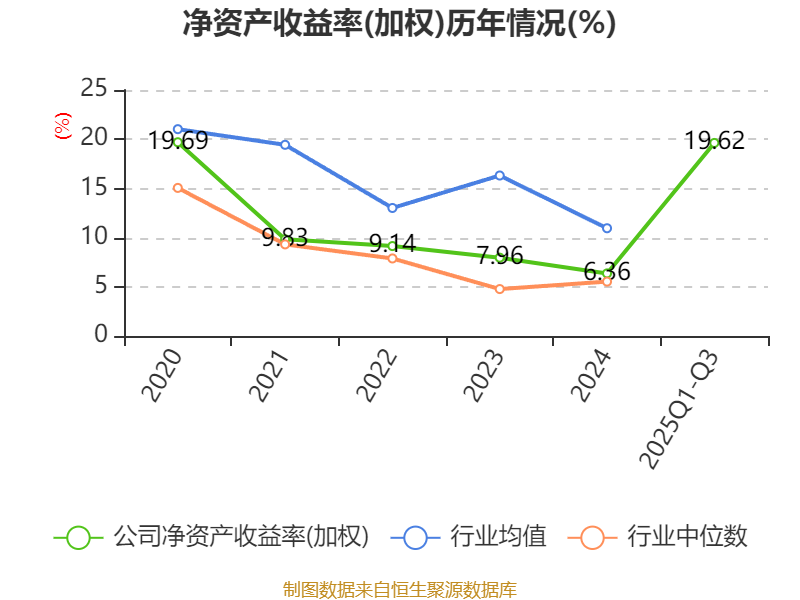 盈利能力方面, 2025年前三季度公司加权平均净资产收益率为19.62%,同比上升13.02个百分点。公司2025年前三季度投入资本回报率为0.48%,较上年同期下降4.86个百分点。