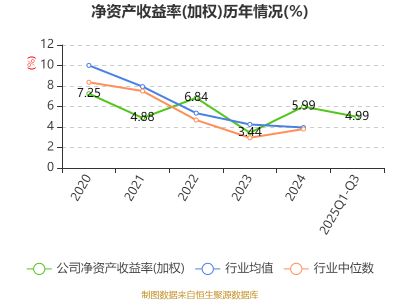 盈利能力方面, 2025年前三季度公司加权平均净资产收益率为4.99%,同比上升2.38个百分点。公司2025年前三季度投入资本回报率为3.42%,较上年同期上升1.52个百分点。