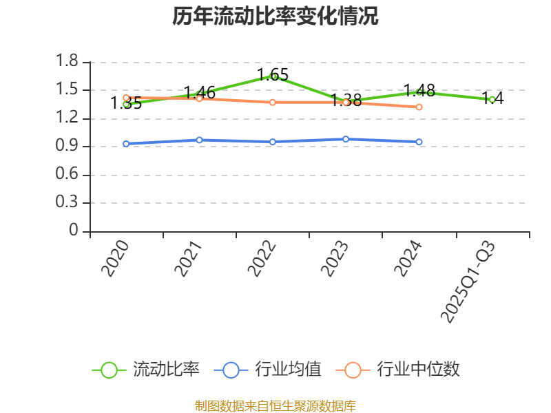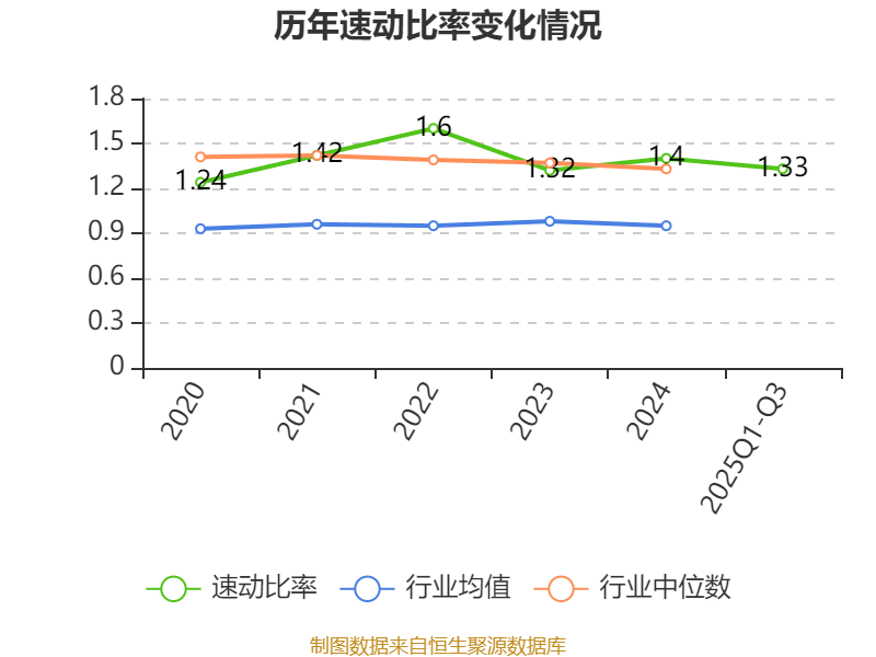2025年前三季度,公司流动比率为1.4,速动比率为1.33。