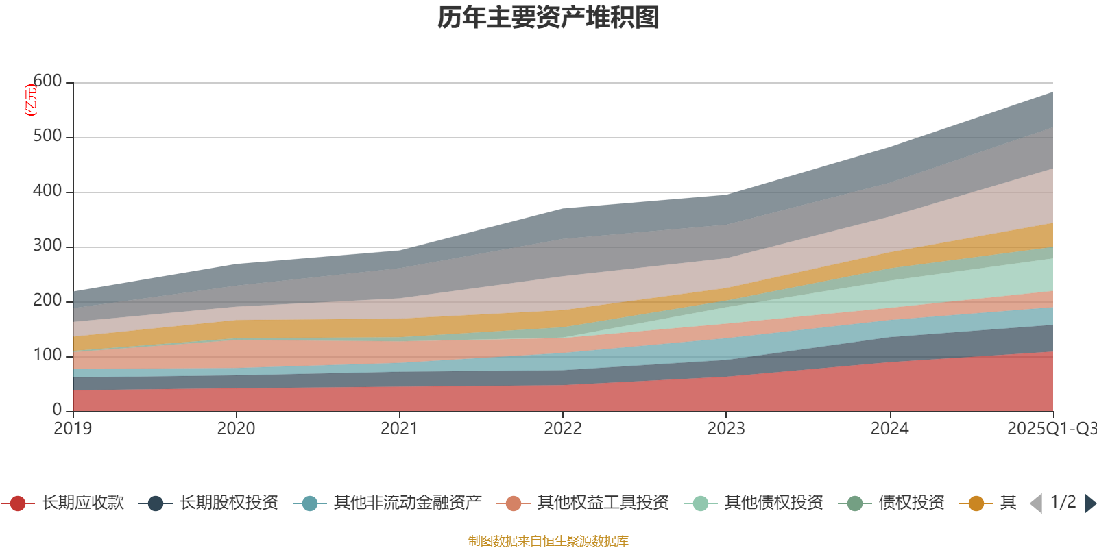 资产重大变化方面,截至2025年三季度末,公司交易性金融资产合计较上年末增加52.5%,占公司总资产比重上升3.53个百分点;买入返售金融资产较上年末减少71.41%,占公司总资产比重下降1.48个百分点;其他流动资产较上年末增加49.62%,占公司总资产比重上升1.45个百分点;长期股权投资较上年末增加6.92%,占公司总资产比重下降1.09个百分点。
