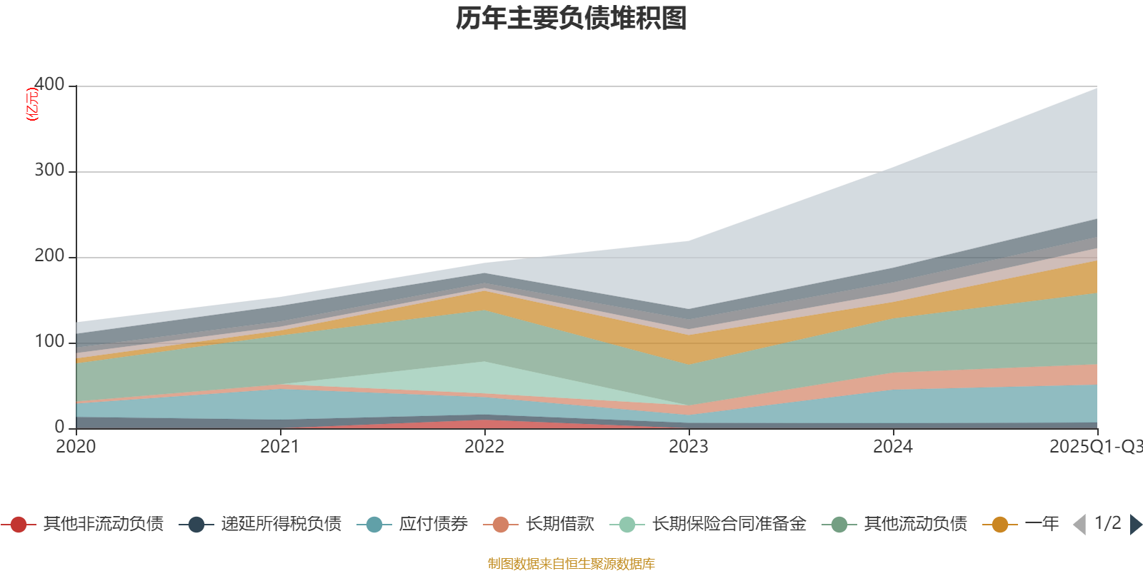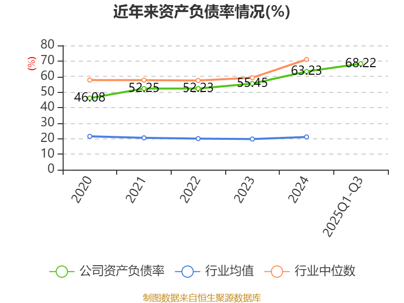 负债重大变化方面,截至2025年三季度末,公司一年内到期的非流动负债较上年末增加97.85%,占公司总资产比重上升2.53个百分点;其他流动负债较上年末增加32.09%,占公司总资产比重上升1.21个百分点;长期应付款合计较上年末增加403.03%,占公司总资产比重上升0.75个百分点;应付债券较上年末增加13.37%,占公司总资产比重下降0.5个百分点。