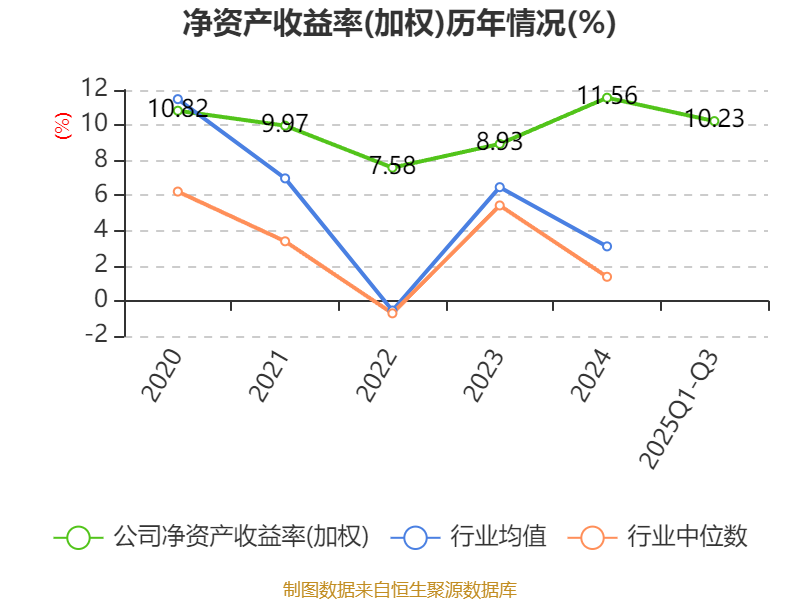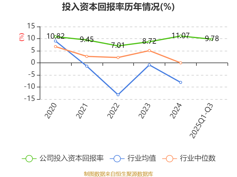 盈利能力方面, 2025年前三季度公司加权平均净资产收益率为10.23%,同比上升1.38个百分点。公司2025年前三季度投入资本回报率为9.78%,较上年同期上升1.26个百分点。