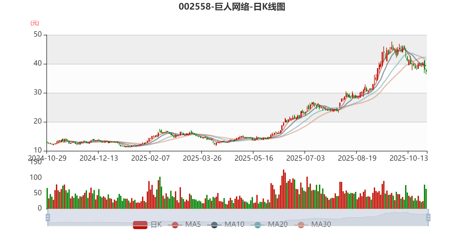 中证智能财讯巨人网络(002558)10月29日披露2025年第三季度报告。前三季度公司实现营业总收入33.68亿元,同比增长51.84%;归母净利润14.17亿元,同比增长32.31%;扣非净利润14.84亿元,同比增长16.50%;经营活动产生的现金流量净额为18.51亿元,同比增长151.90%;报告期内,巨人网络基本每股收益为0.77元,加权平均净资产收益率为10.23%。