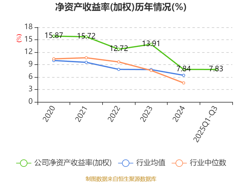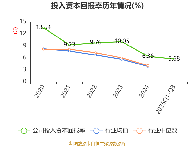 盈利能力方面, 2025年前三季度公司加权平均净资产收益率为7.83%,同比下降1.31个百分点。公司2025年前三季度投入资本回报率为5.68%,较上年同期下降0.88个百分点。