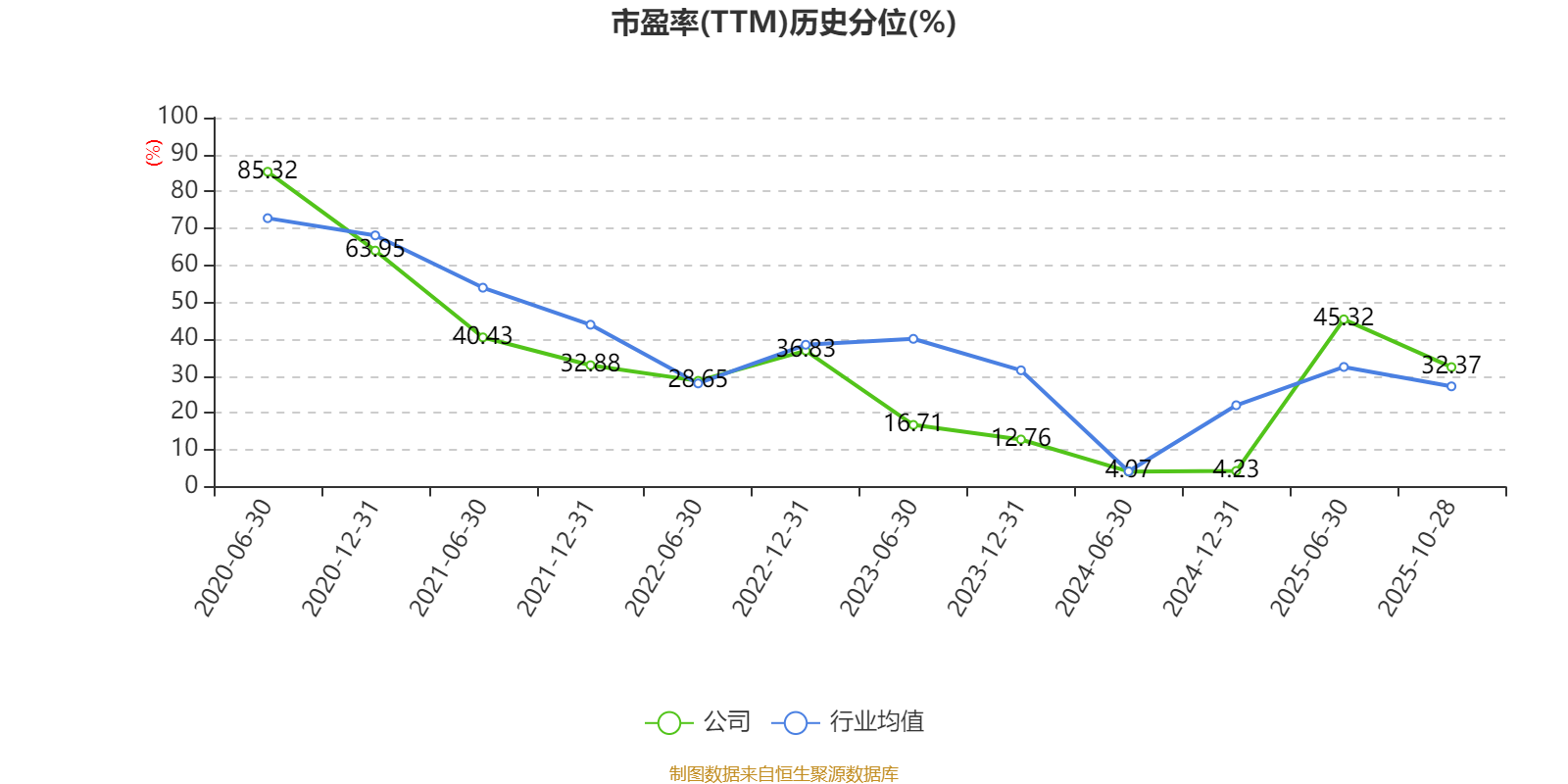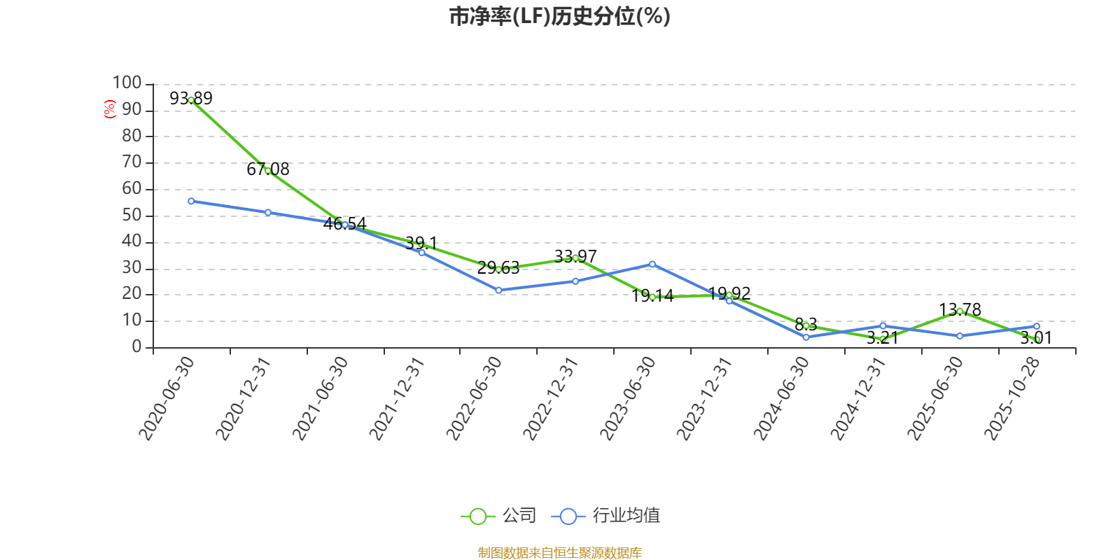 市盈率、市净率为负时,不显示当期分位数,会导致折线图中断。