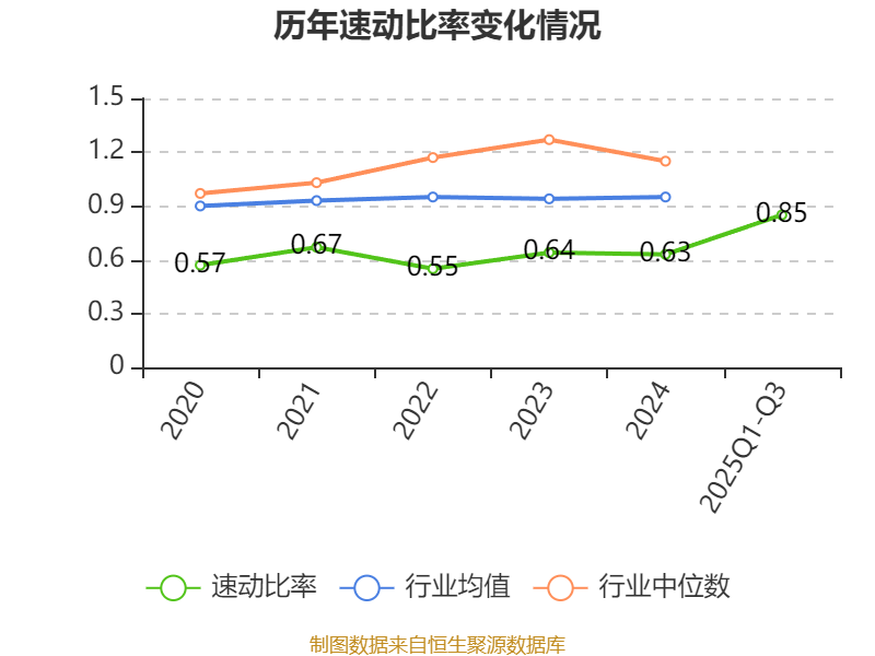 2025年前三季度,公司流动比率为0.85,速动比率为0.85。