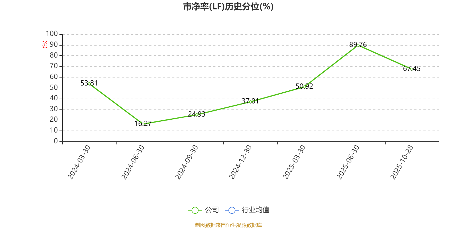 市盈率、市净率为负时,不显示当期分位数,会导致折线图中断。