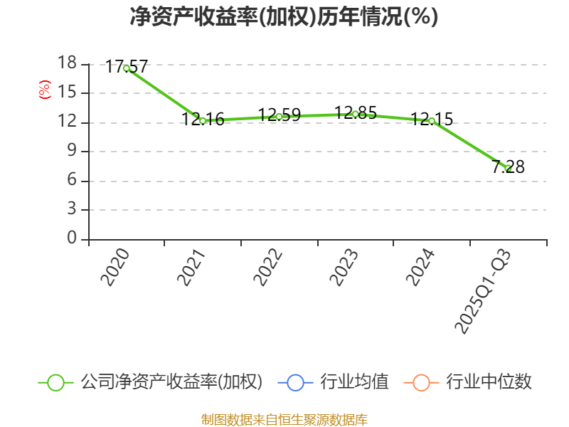 盈利能力方面, 2025年前三季度公司加权平均净资产收益率为7.28%,同比下降0.69个百分点。公司2025年前三季度投入资本回报率为5.27%,较上年同期下降0.64个百分点。