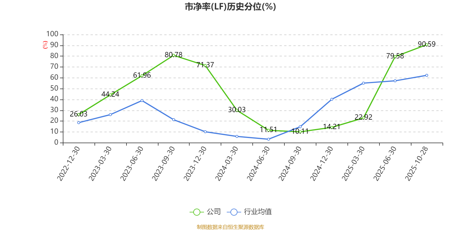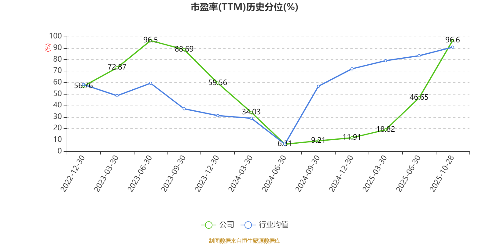 市盈率、市净率为负时,不显示当期分位数,会导致折线图中断。