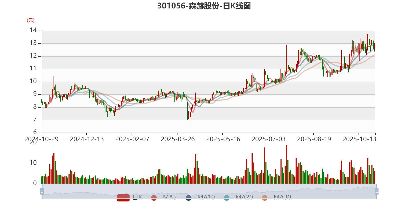 以10月28日收盘价计算,森赫股份目前市盈率(TTM)约为46.95倍,市净率(LF)约4.16倍,市销率(TTM)约5.86倍。