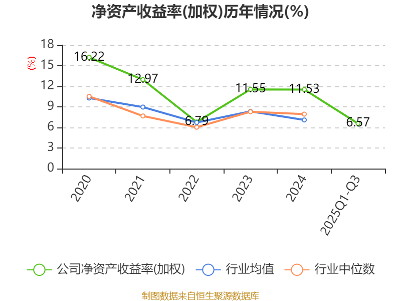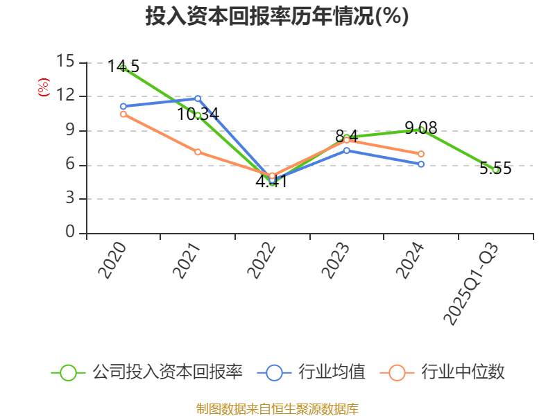 盈利能力方面, 2025年前三季度公司加权平均净资产收益率为6.57%,同比下降2.93个百分点。公司2025年前三季度投入资本回报率为5.55%,较上年同期下降1.92个百分点。