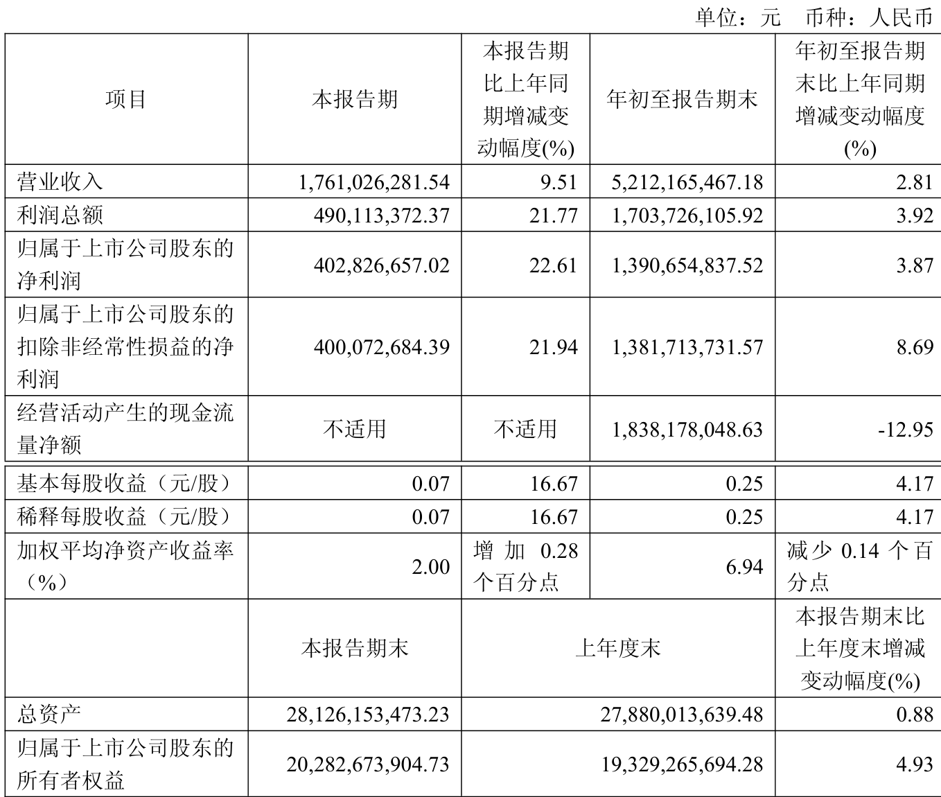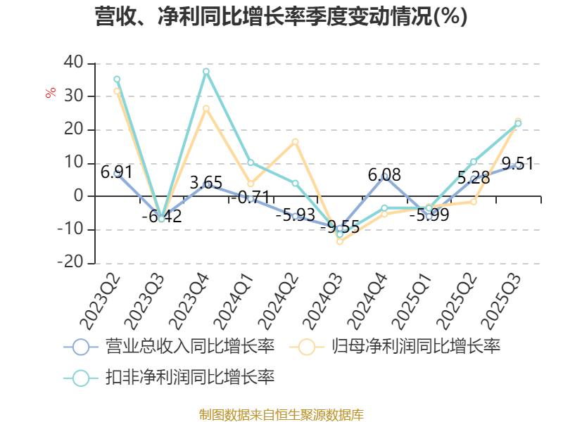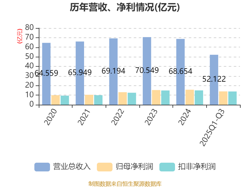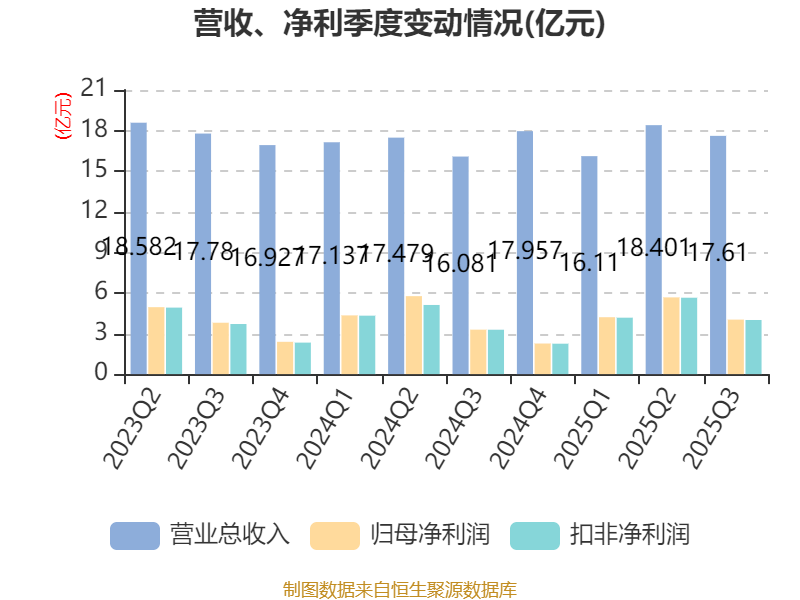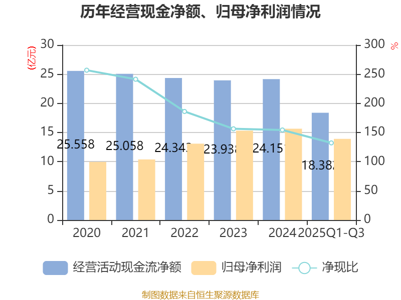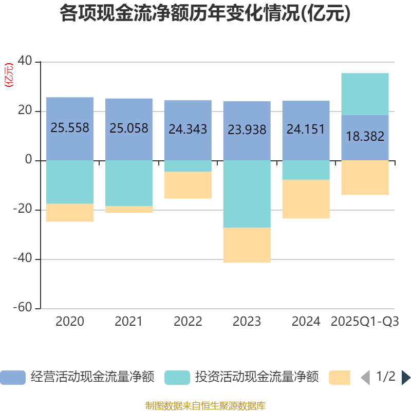2025年前三季度,公司经营活动现金流净额为18.38亿元,同比下降12.95%;筹资活动现金流净额-14.01亿元,同比减少3.09亿元;投资活动现金流净额16.98亿元,上年同期为-2.92亿元。