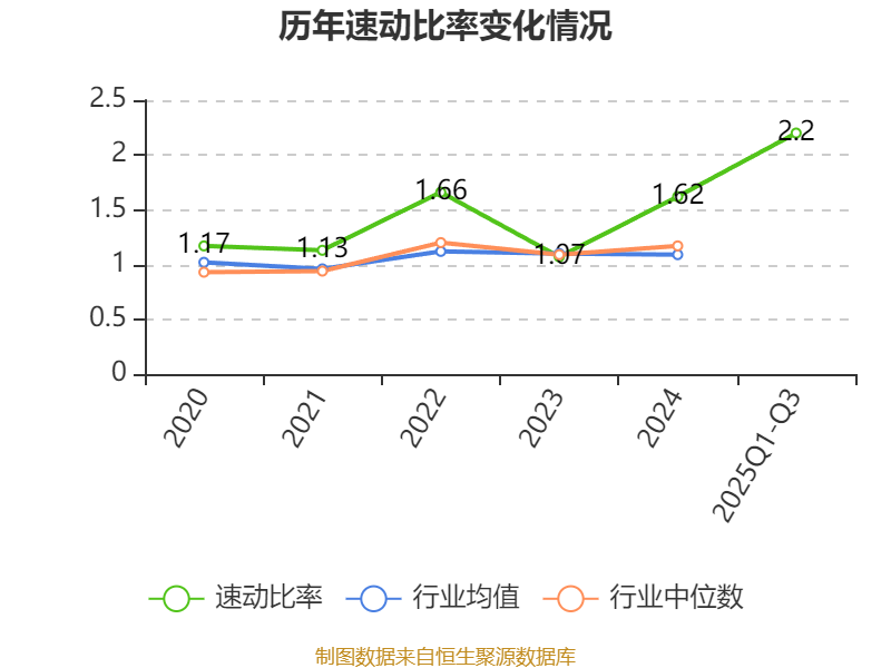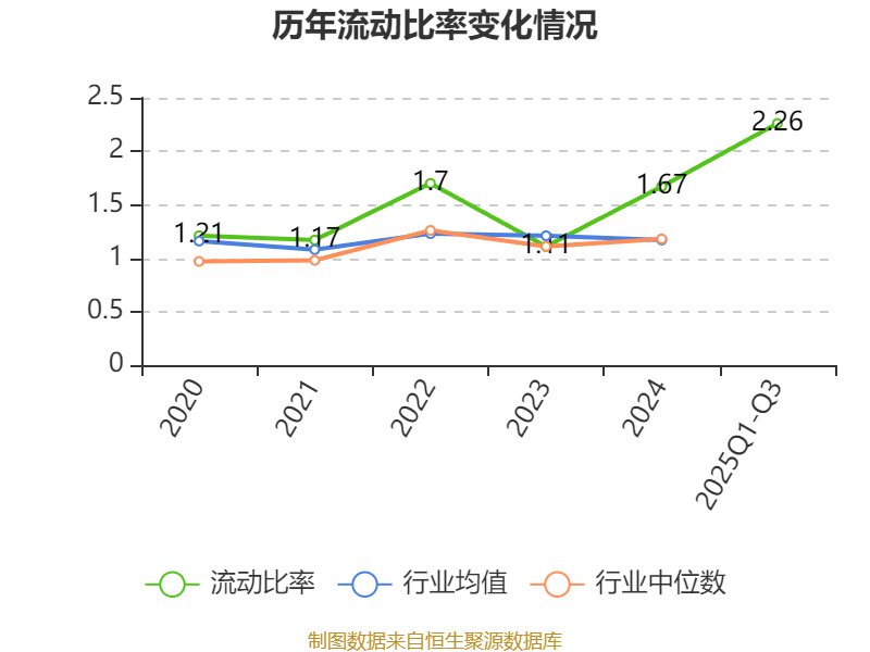 2025年前三季度,公司流动比率为2.26,速动比率为2.2。