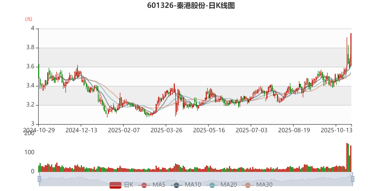 三季报显示,2025年三季度末的公司十大流通股东中,新进股东为河北港口集团(天津)投资管理有限公司,取代了二季度末的长城人寿保险股份有限公司-自有资金。在具体持股比例上,香港中央结算(代理人)有限公司持股有所上升,秦皇岛市人民政府国有资产监督管理委员会、香港中央结算有限公司(沪股通)持股有所下降。