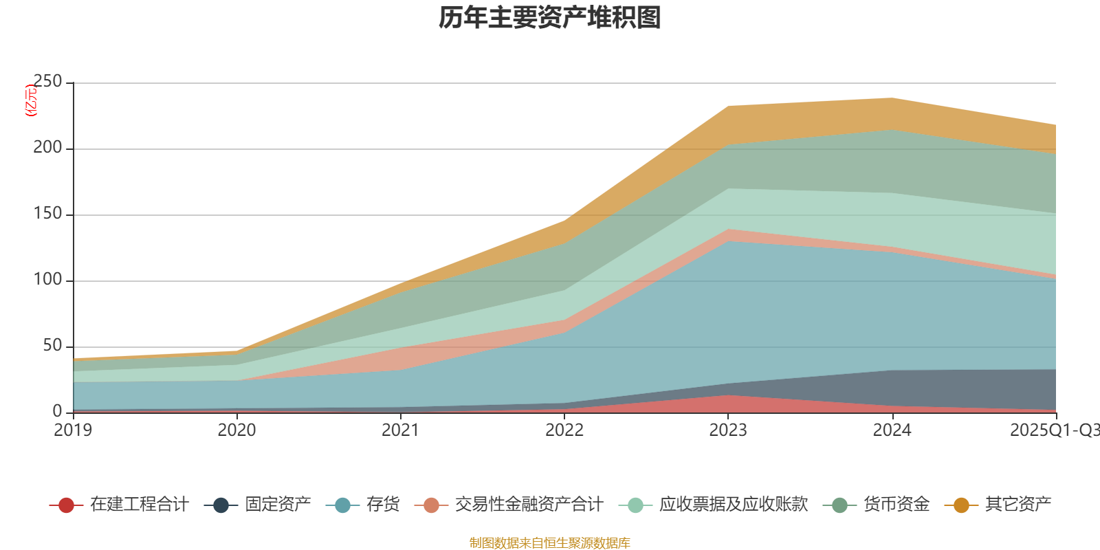 资产重大变化方面,截至2025年三季度末,公司存货较上年末减少23.18%,占公司总资产比重下降5.96个百分点;应收票据及应收账款较上年末增加13.63%,占公司总资产比重上升4.17个百分点;固定资产较上年末增加12.93%,占公司总资产比重上升2.69个百分点;预付款项较上年末减少70.26%,占公司总资产比重下降1.37个百分点。