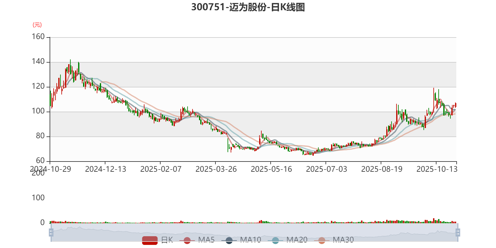 以10月28日收盘价计算,迈为股份目前市盈率(TTM)约为35.86倍,市净率(LF)约3.79倍,市销率(TTM)约3.6倍。