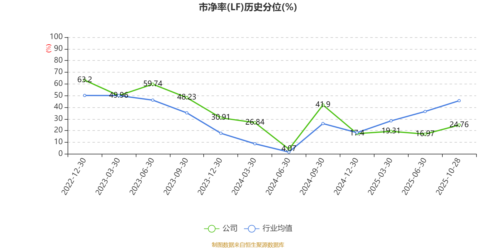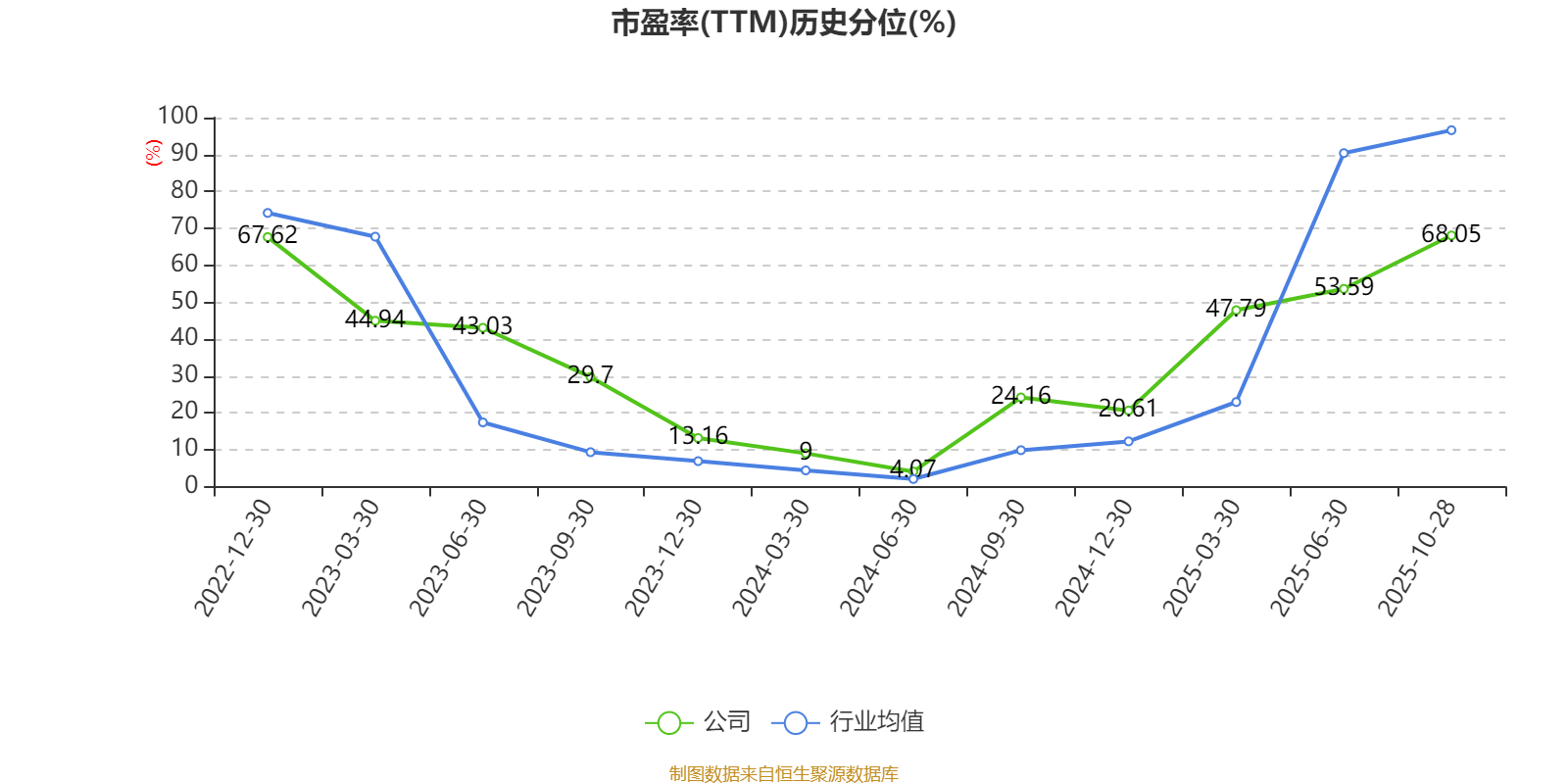 市盈率、市净率为负时,不显示当期分位数,会导致折线图中断。