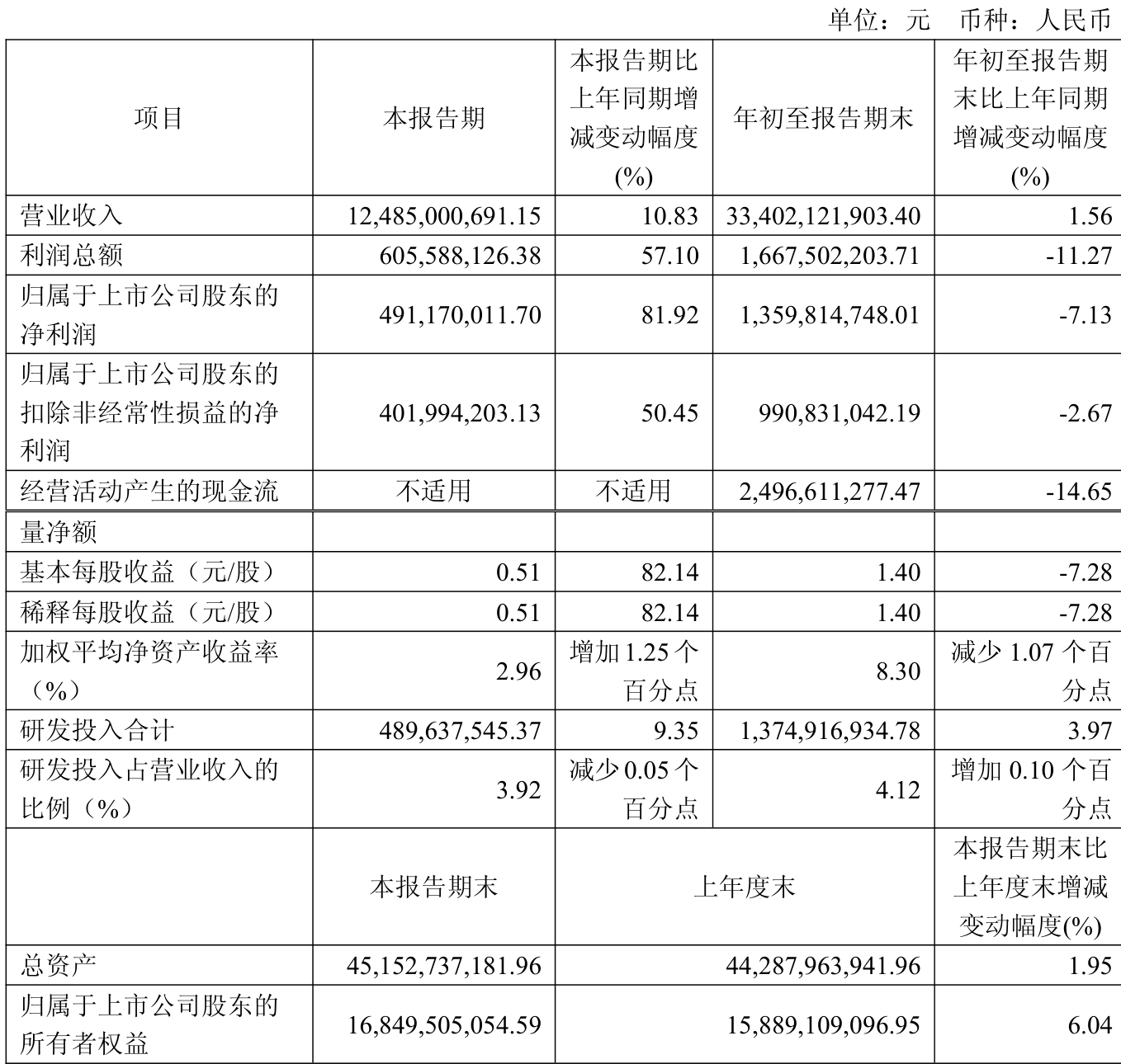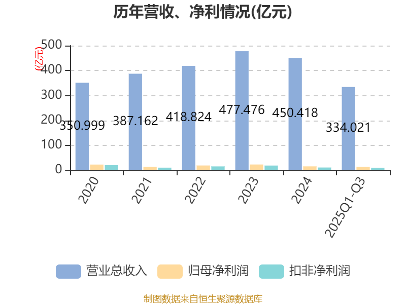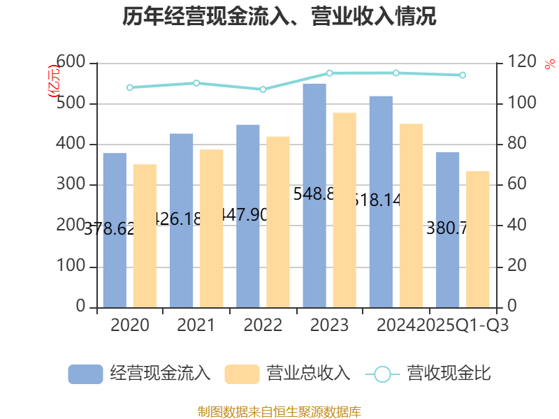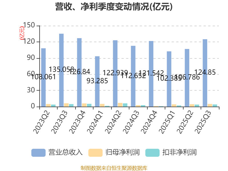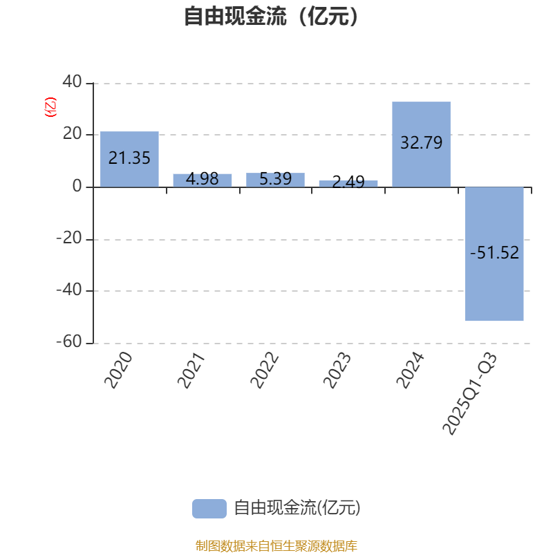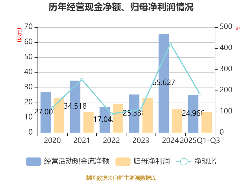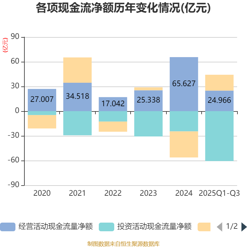 2025年前三季度,公司经营活动现金流净额为24.97亿元,同比下降14.65%;筹资活动现金流净额19.25亿元,同比增加10.13亿元;投资活动现金流净额-60.58亿元,上年同期为-37.83亿元。