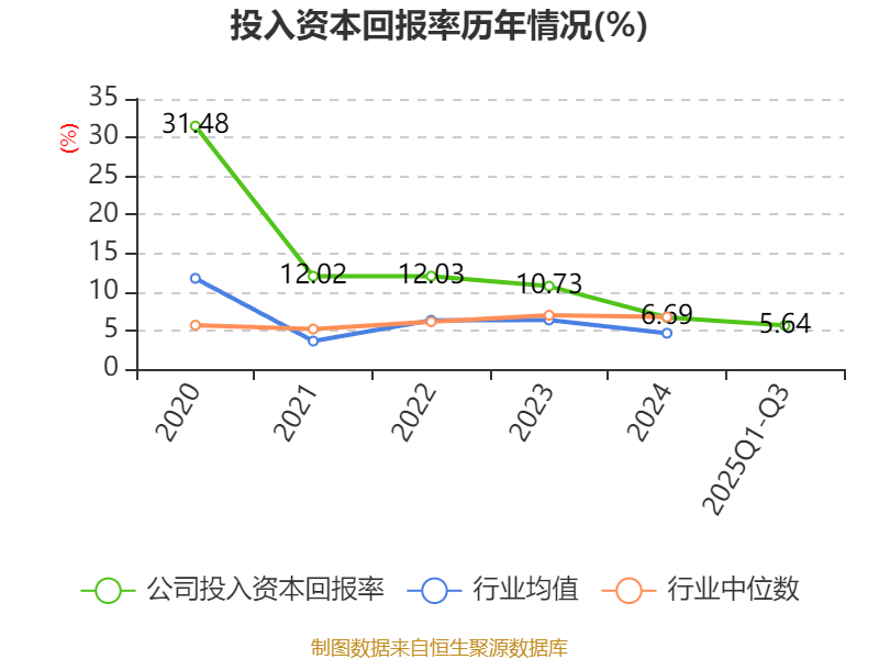 盈利能力方面, 2025年前三季度公司加权平均净资产收益率为8.3%,同比下降1.07个百分点。公司2025年前三季度投入资本回报率为5.64%,较上年同期下降0.67个百分点。