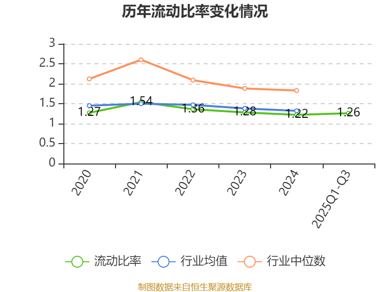 2025年前三季度,公司流动比率为1.26,速动比率为1.04。
