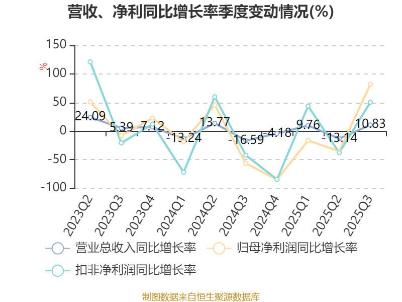 资产重大变化方面,截至2025年三季度末,公司货币资金较上年末减少25.91%,占公司总资产比重下降11.55个百分点;交易性金融资产合计较上年末增加748.4%,占公司总资产比重上升11.34个百分点;应收票据及应收账款较上年末增加48.43%,占公司总资产比重上升3.34个百分点;存货较上年末减少13.61%,占公司总资产比重下降2.26个百分点。