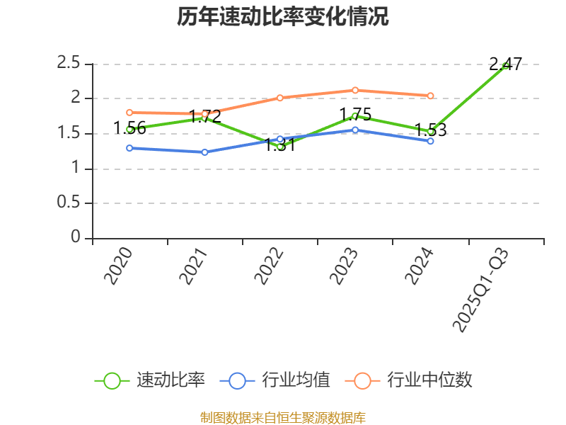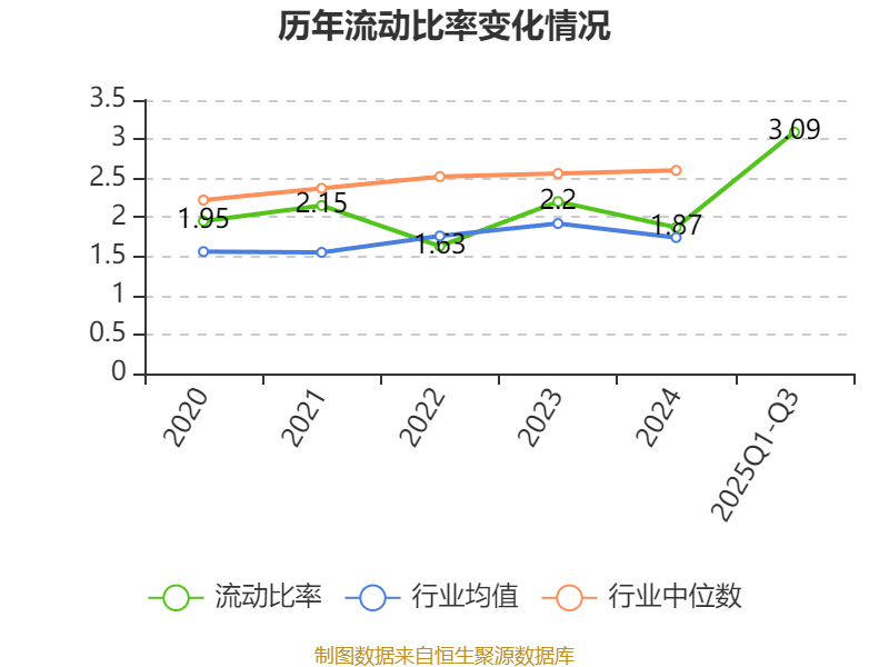 2025年前三季度,公司流动比率为3.09,速动比率为2.47。