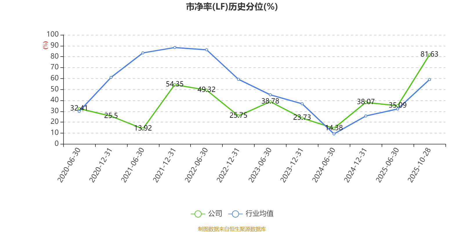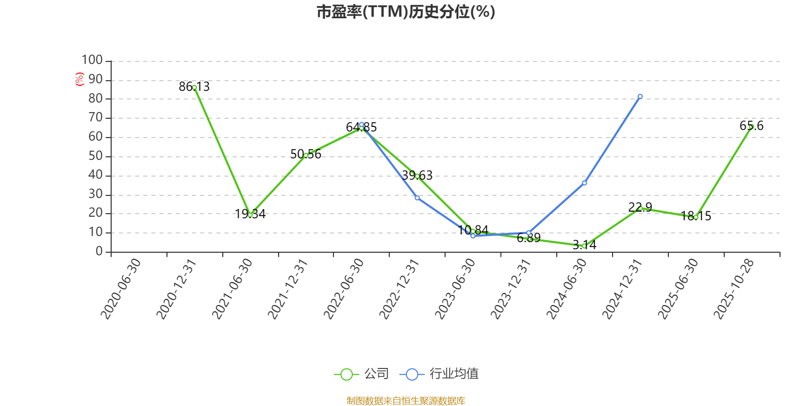 市盈率、市净率为负时,不显示当期分位数,会导致折线图中断。