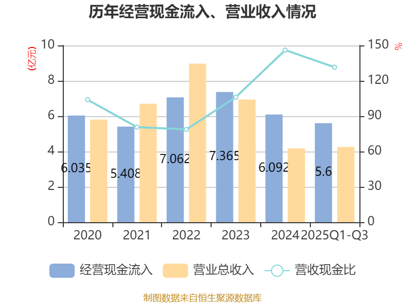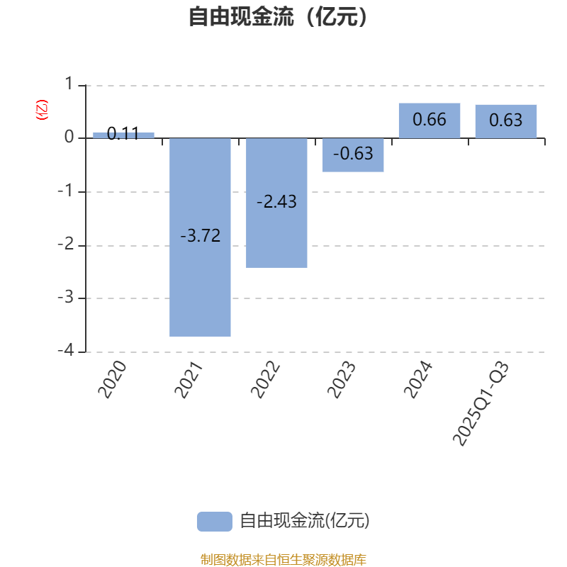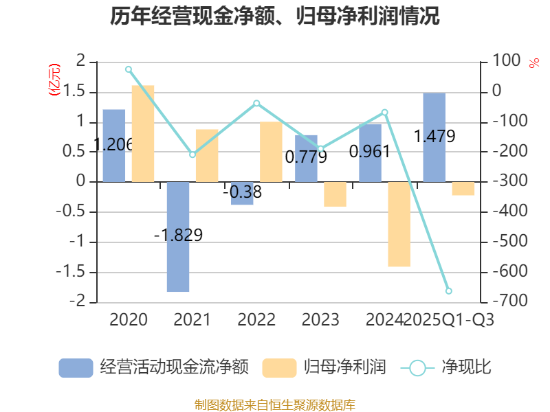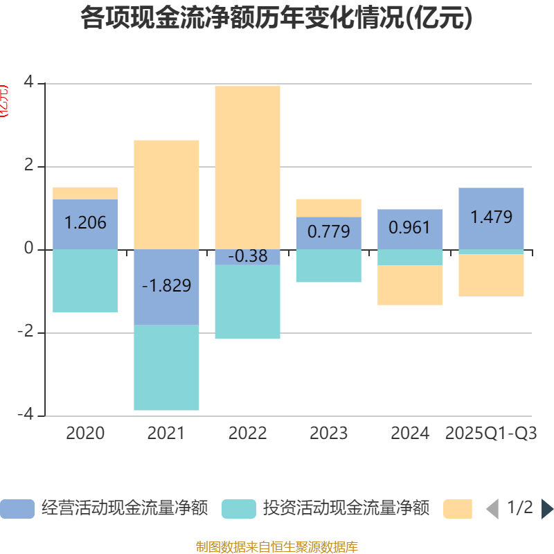 2025年前三季度,公司经营活动现金流净额为1.48亿元,同比增长50.66%;筹资活动现金流净额-1.01亿元,同比增加769.91万元;投资活动现金流净额-1220.28万元,上年同期为-2685.09万元。