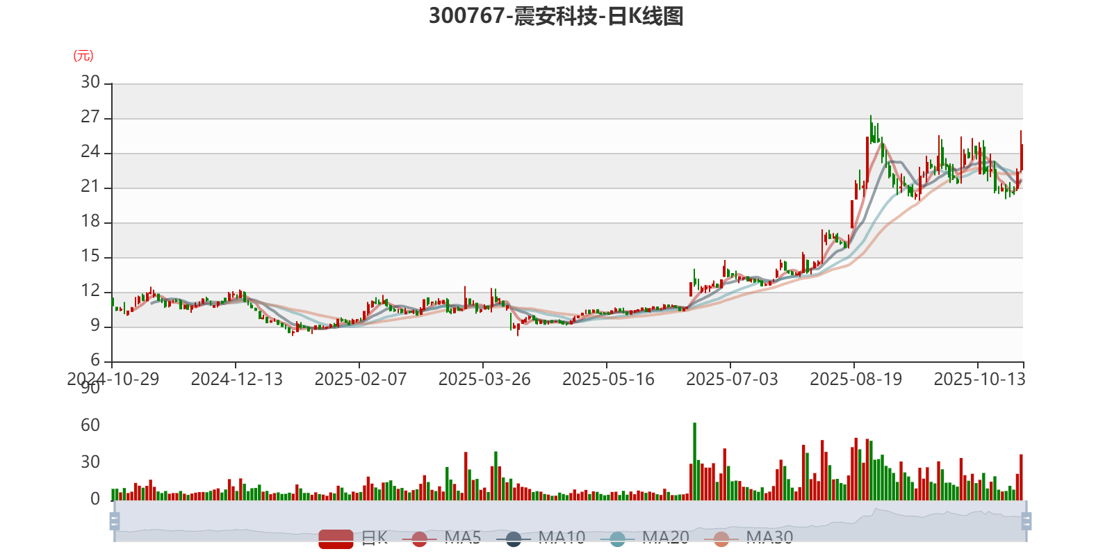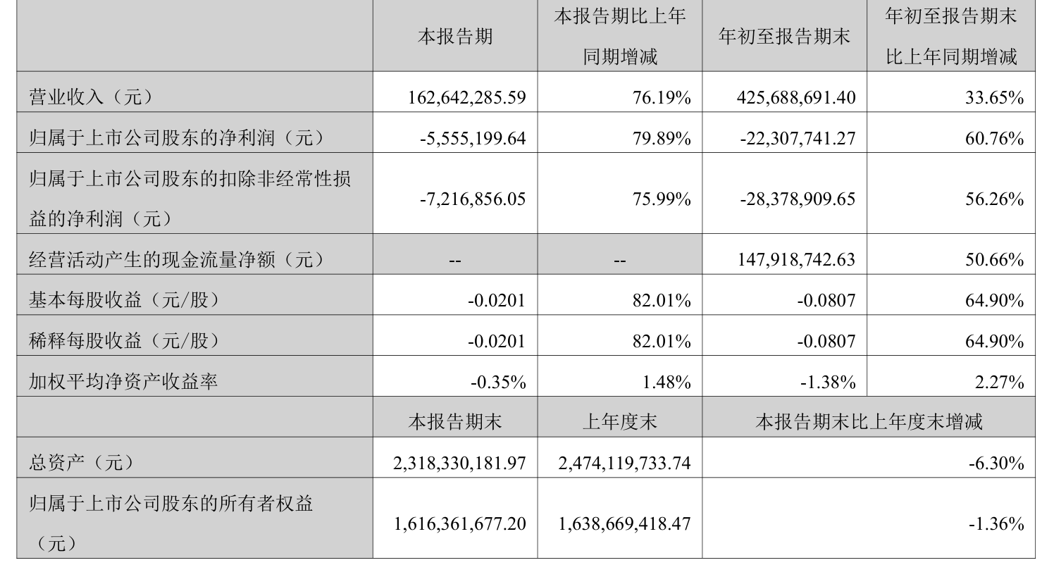 中证智能财讯震安科技(300767)10月29日披露2025年第三季度报告。前三季度公司实现营业总收入4.26亿元,同比增长33.65%;归母净利润亏损2230.77万元,上年同期亏损5684.46万元;扣非净利润亏损2837.89万元,上年同期亏损6488.73万元;经营活动产生的现金流量净额为1.48亿元,同比增长50.66%;报告期内,震安科技基本每股收益为-0.0807元,加权平均净资产收益率为-1.38%。