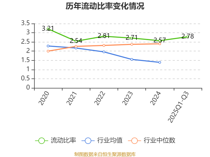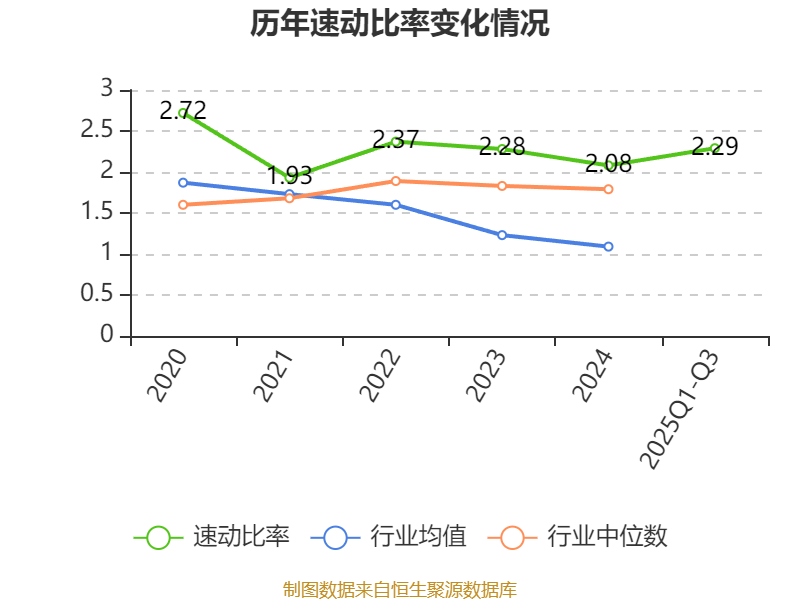 2025年前三季度,公司流动比率为2.78,速动比率为2.29。