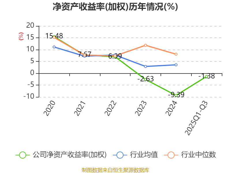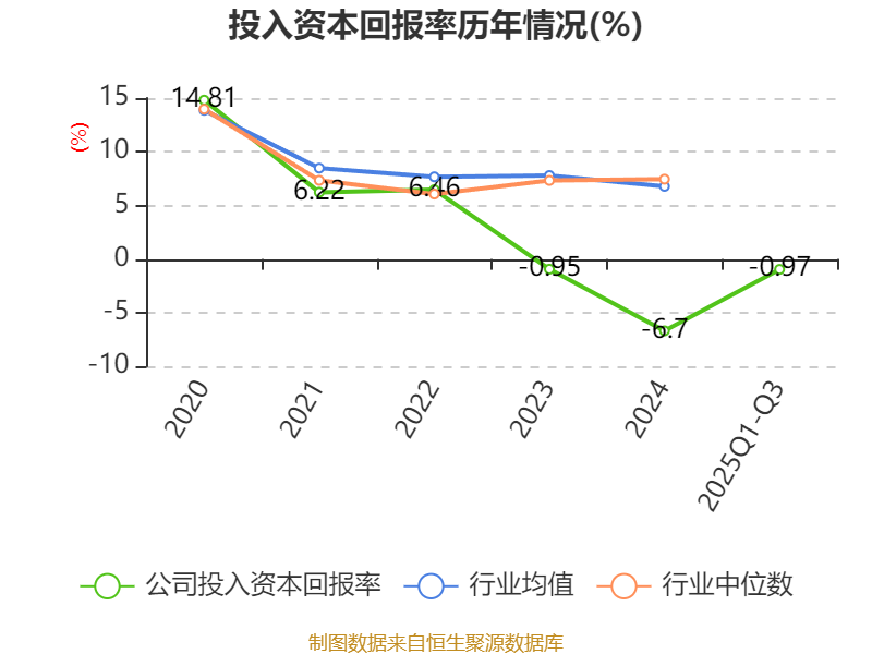盈利能力方面, 2025年前三季度公司加权平均净资产收益率为-1.38%,同比上升2.27个百分点。公司2025年前三季度投入资本回报率为-0.97%,较上年同期上升0.9个百分点。
