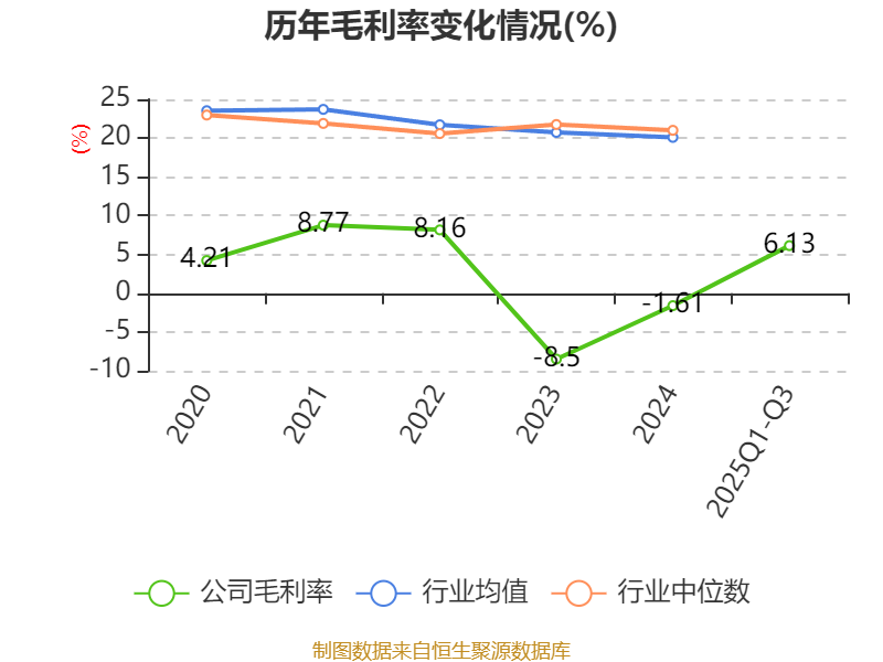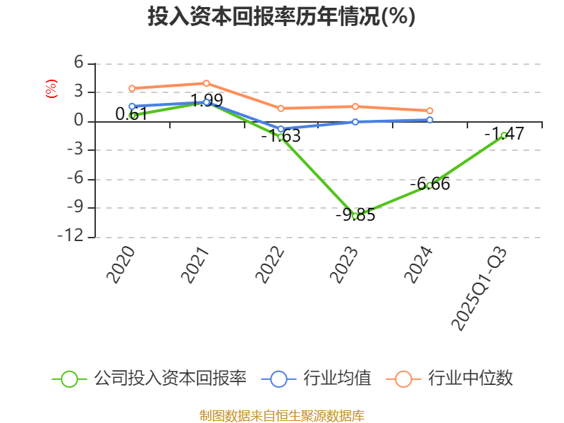 盈利能力方面, 2025年前三季度公司加权平均净资产收益率为-2.85%,同比上升2.16个百分点。公司2025年前三季度投入资本回报率为-1.47%,较上年同期上升2.41个百分点。