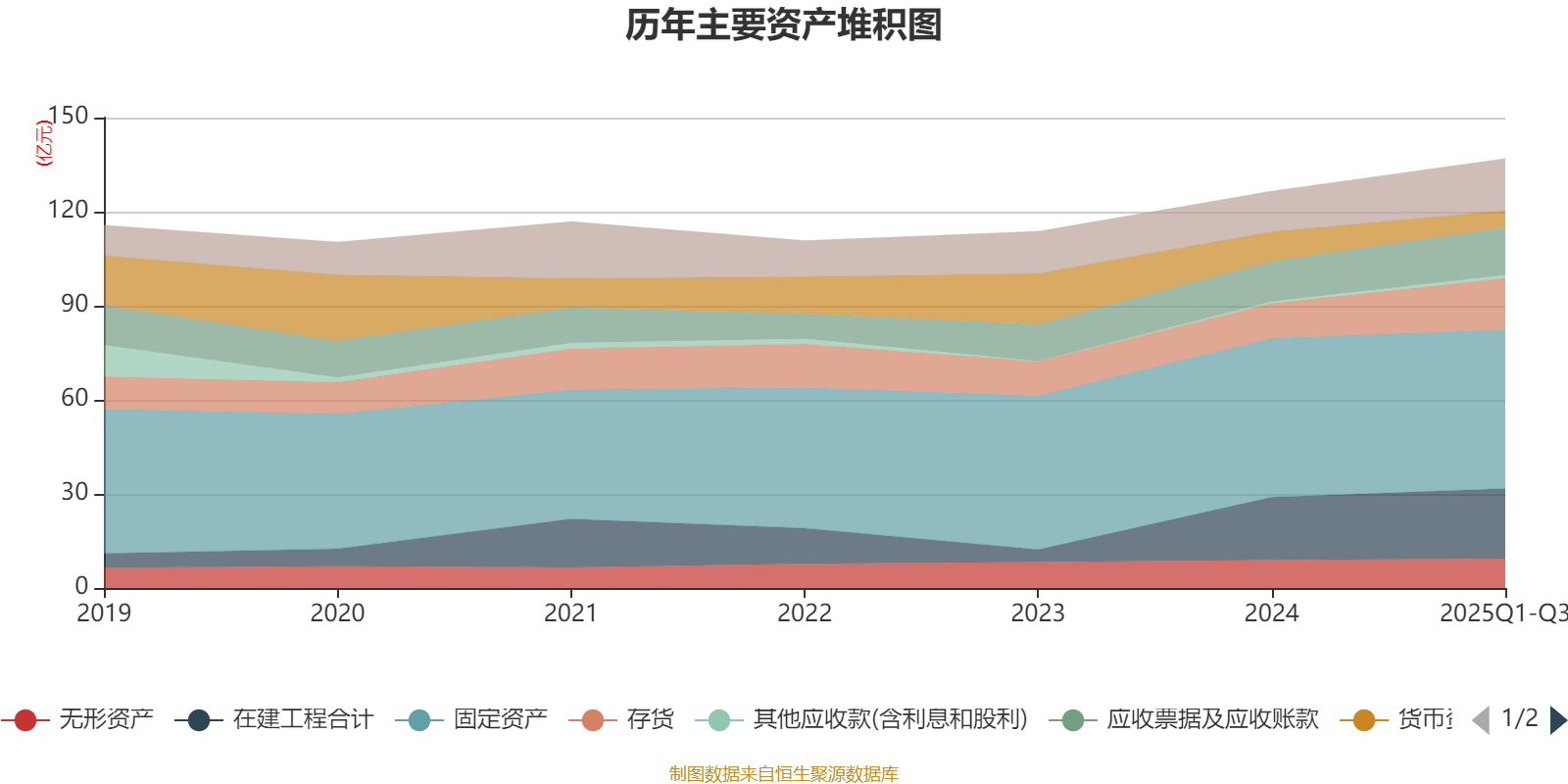 资产重大变化方面,截至2025年三季度末,公司货币资金较上年末减少42.51%,占公司总资产比重下降3.49个百分点;存货较上年末增加47.9%,占公司总资产比重上升3.22个百分点;固定资产较上年末没有变化,占公司总资产比重下降3.03个百分点;应收票据及应收账款较上年末增加17.48%,占公司总资产比重上升0.88个百分点。